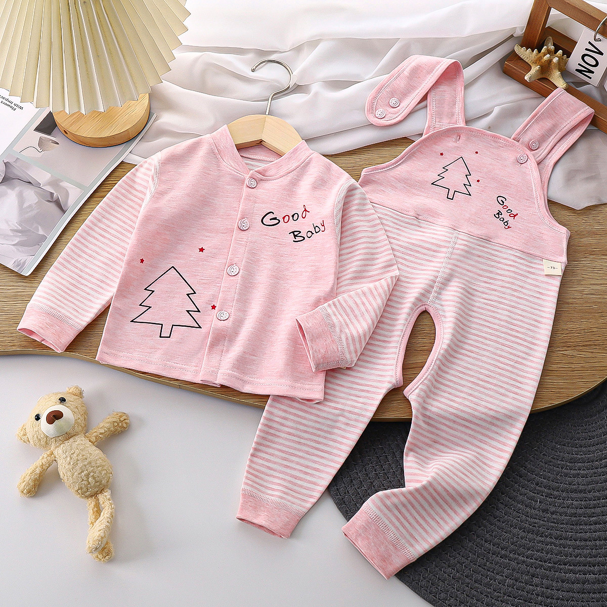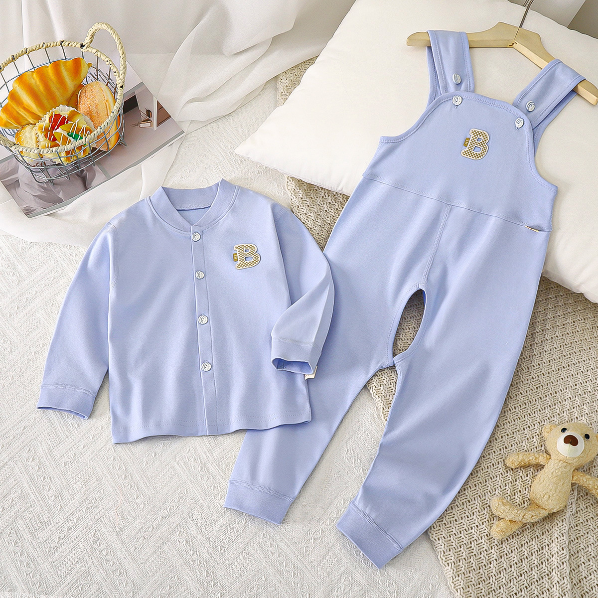 아기 순면 뼈없는 멜빵 세트 유아 봄, 가을 속옷 세트 소년과 소녀 가을 옷과 긴 바지 2 피스 세트