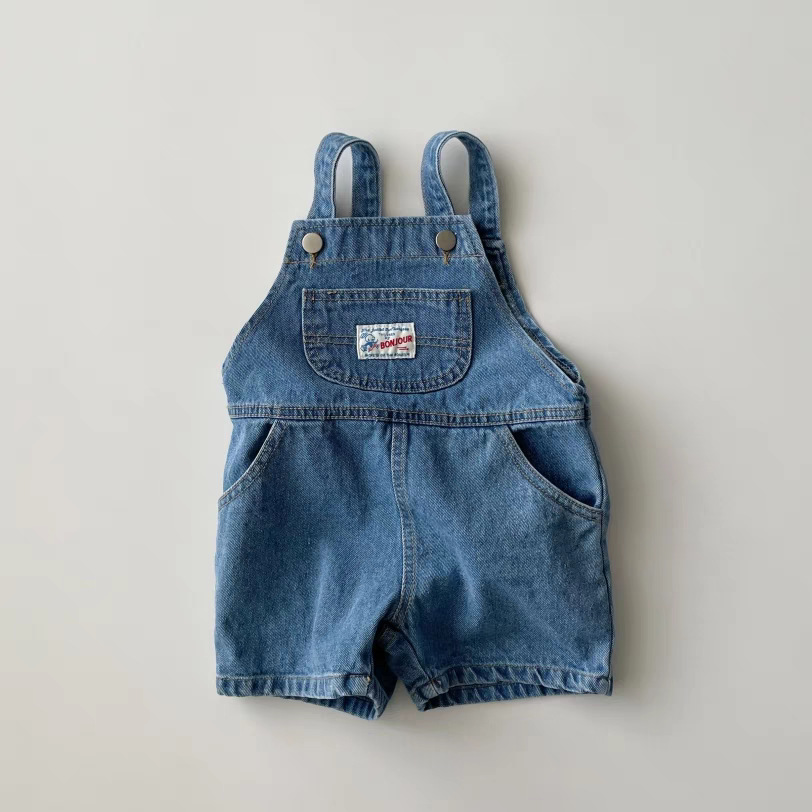 소년과 소녀를위한 새로운 스타일 한국 스타일 유아 및 아동 의류 여름 한국 스타일 캐주얼 스타일 데님 작업복 반바지스토어 가기