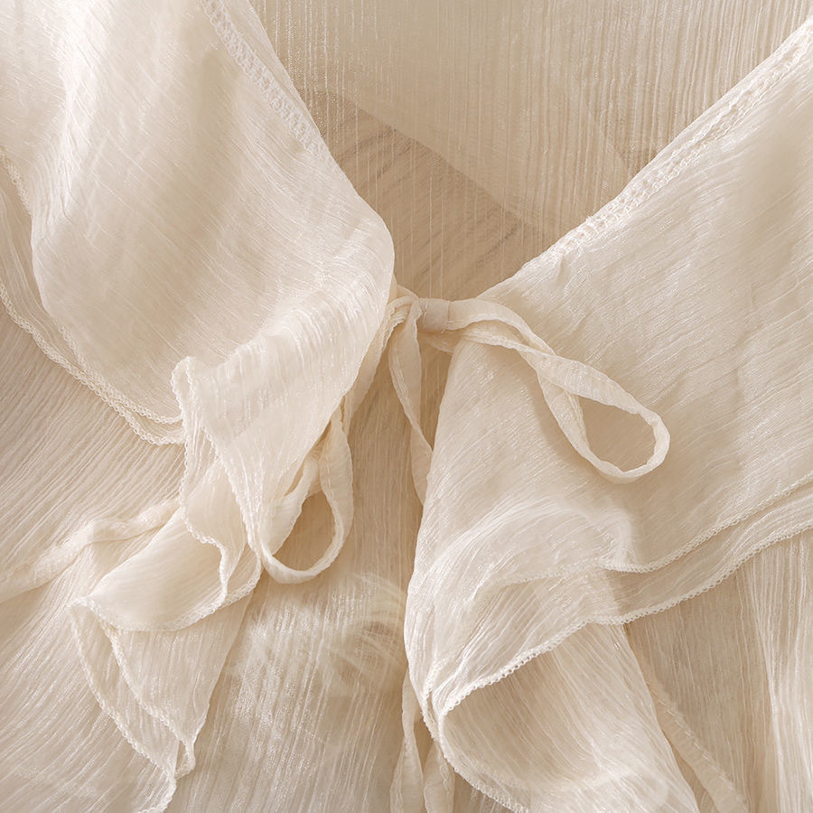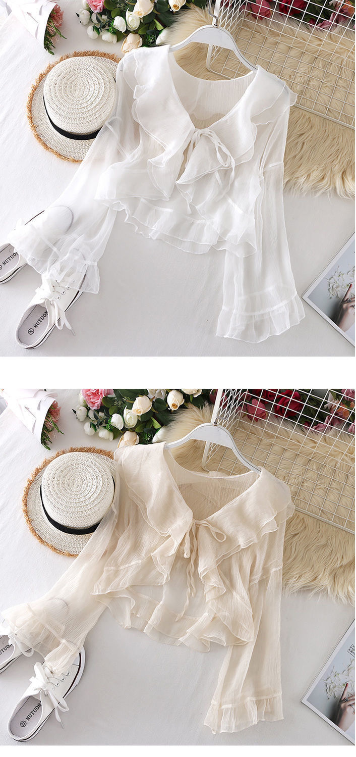 超仙喇叭袖荷叶边系带短款防晒衫上衣夏季新款配裙子外搭小披肩女