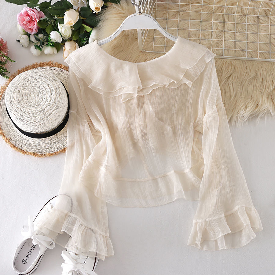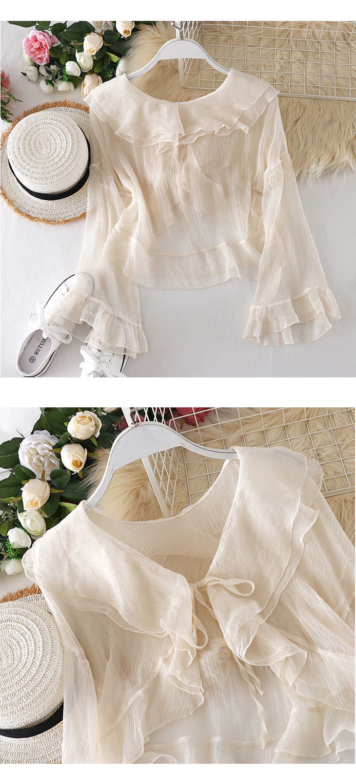 슈퍼 요정 벨 슬리브 러플 레이스 업 짧은 자외선 차단 셔츠 탑 여름 새 스타일 스커트와 작은 숄 여성용스토어 가기