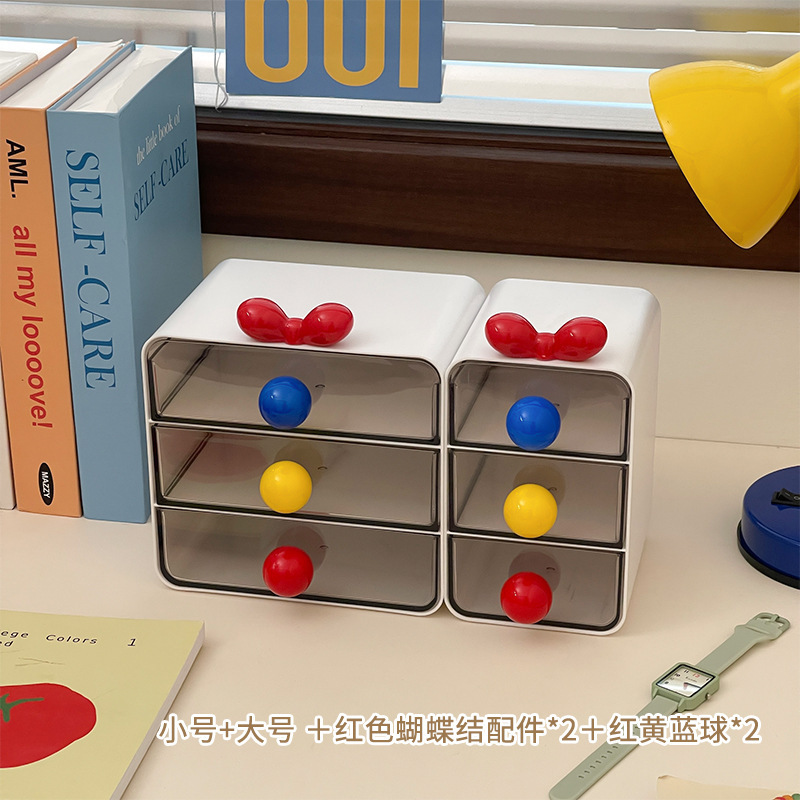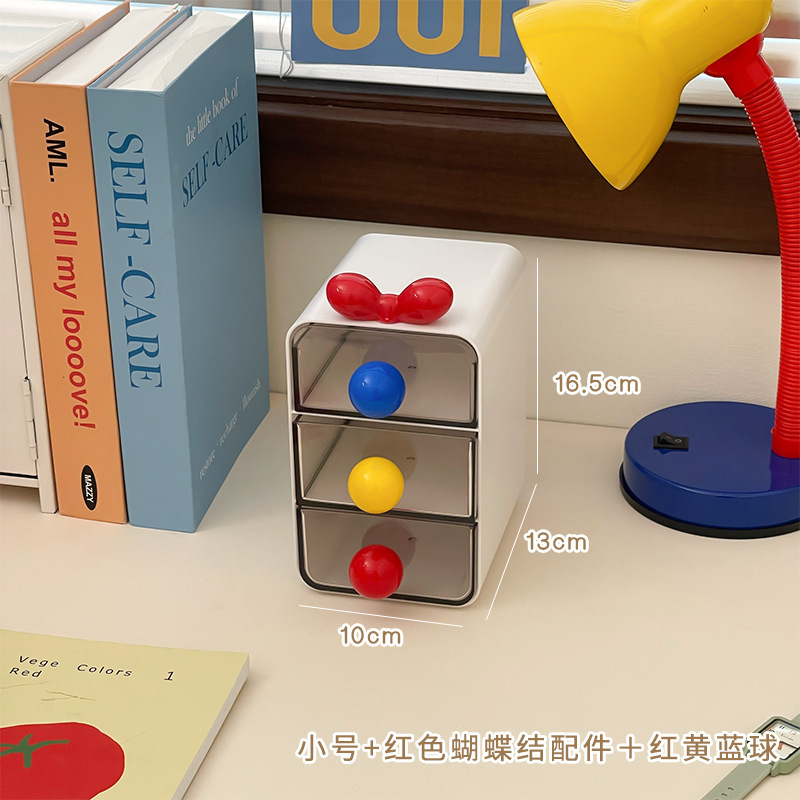 • 작은 토끼 서랍 데스크탑 보관함 소형 + 대형 + 사랑 나비 머리 액세서리 레드