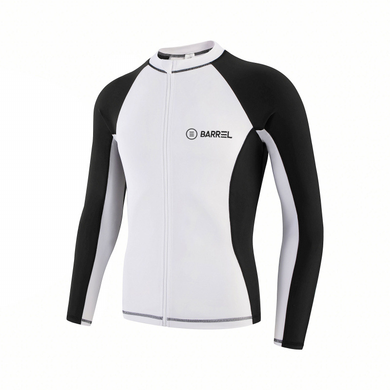 • 화이트 바디 그레이 슬리브 지퍼 탑