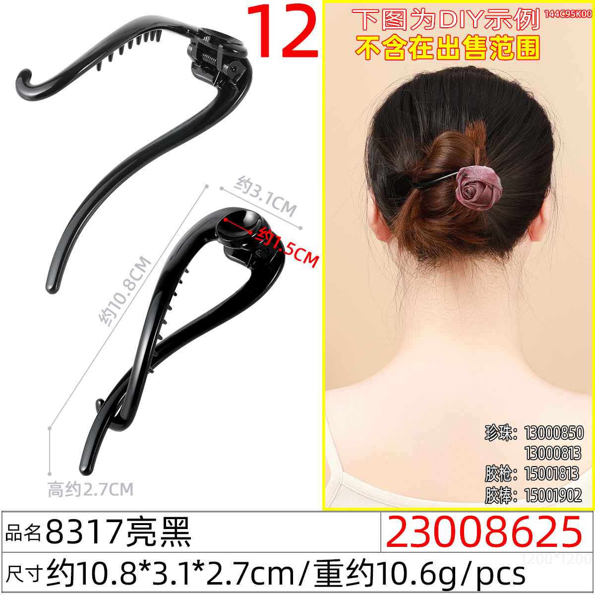 23012025#JYT-963亮黑扭扭夹