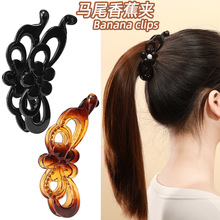 간단한 다크 브라운 진주 잡아 클립 여성의 새로운 꼬인 머리핀 Diy 상어 클립 여성용 헤어 액세서리스토어 가기