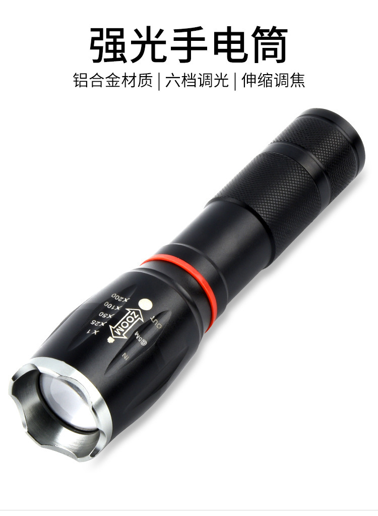1.灯珠: T6灯珠,高亮度800流明,使用寿命100,000小时理论值;