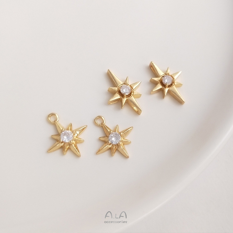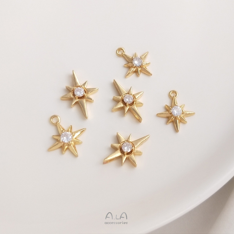 컬러 유지 14K 골드 상감 지르콘 8 만 스타 펜던트 수제 DIY 팔찌 쇄골 목걸이 귀걸이 보석 작은 펜던트스토어 가기