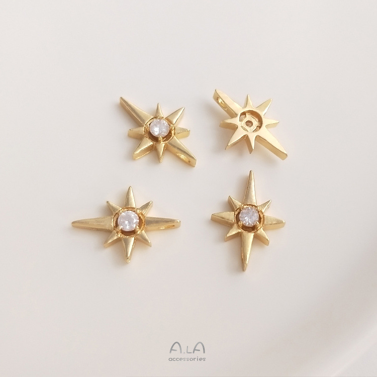 컬러 유지 14K 골드 상감 지르콘 8 만 스타 펜던트 수제 DIY 팔찌 쇄골 목걸이 귀걸이 보석 작은 펜던트