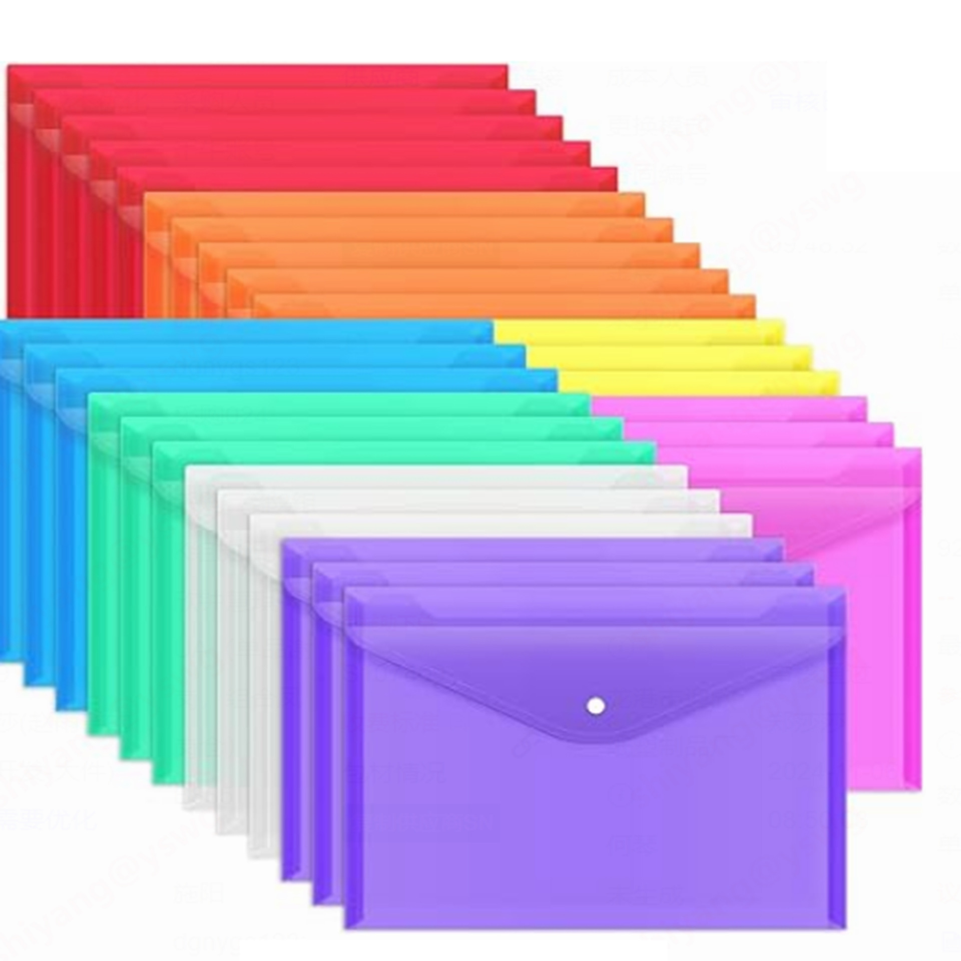 재고 있음 도매 A4 A5 투명 스냅 파일 가방 PP 컬러 파일 폴더 보관 가방 인쇄 광고 로고스토어 가기