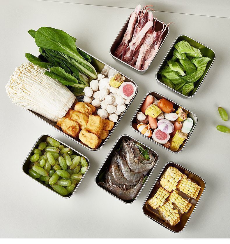 • 스테인레스 스틸 크리스퍼 박스 - 정사각형(뚜껑 포함) - 2개