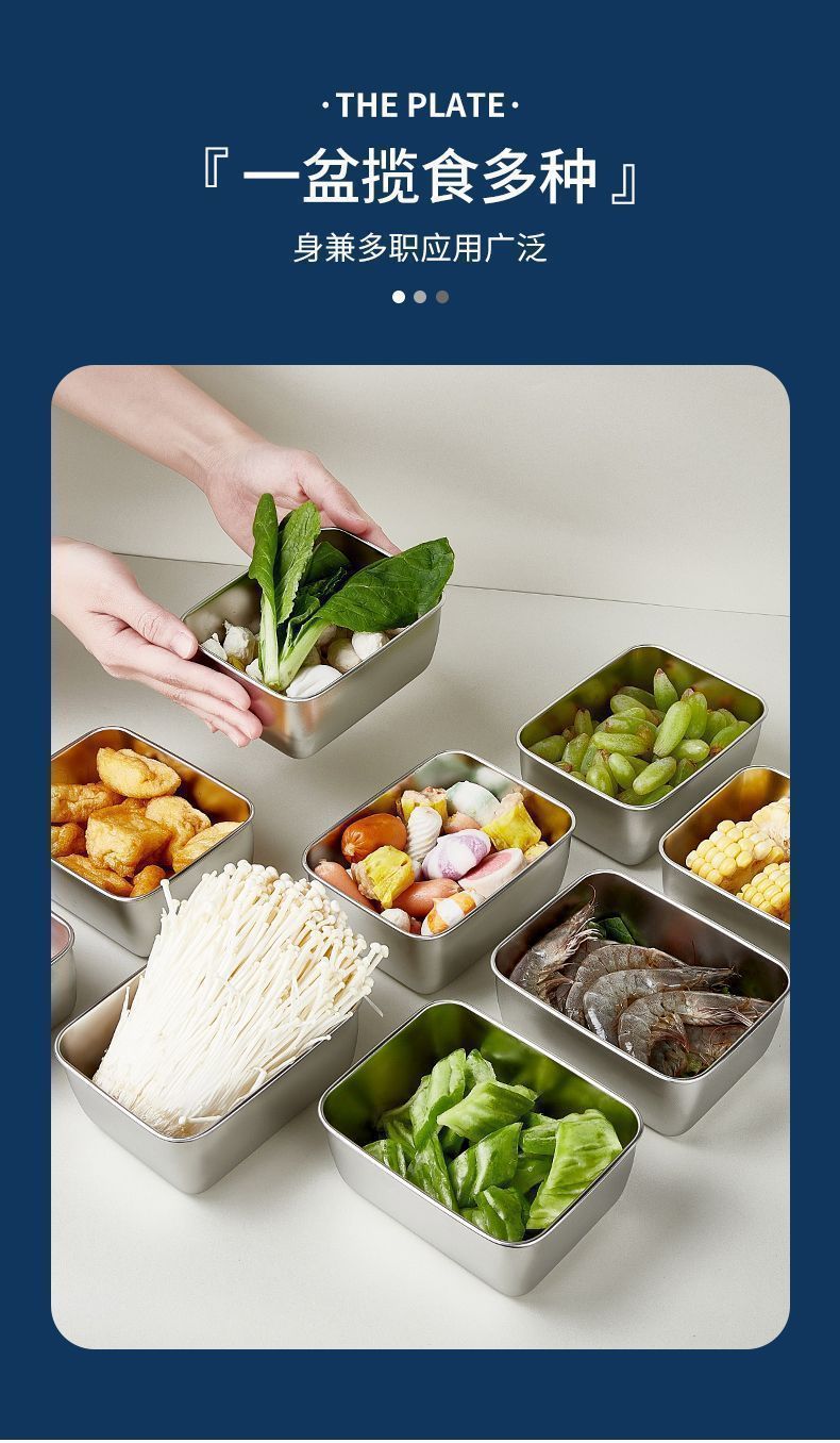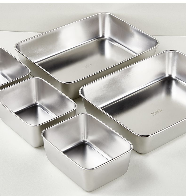 스테인레스 스틸 사각형 플레이트 뚜껑 신선한 보관 상자 트레이 직사각형 사각형 상자 냉장고 저장 상자 구운 생선 샐러드 분지 마구간스토어 가기