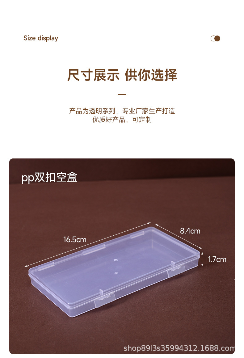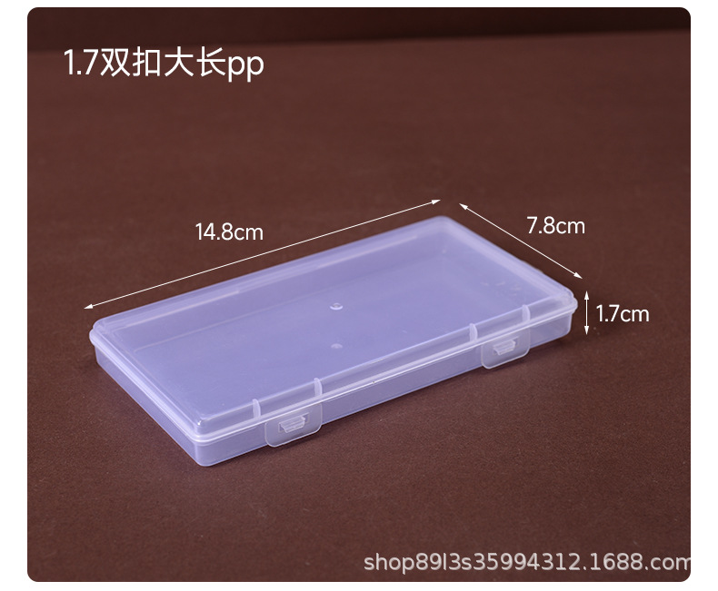 1.7双扣大长pp外径:14.8*7.8*1.7CM 内径14.3*7.3*1.6CM