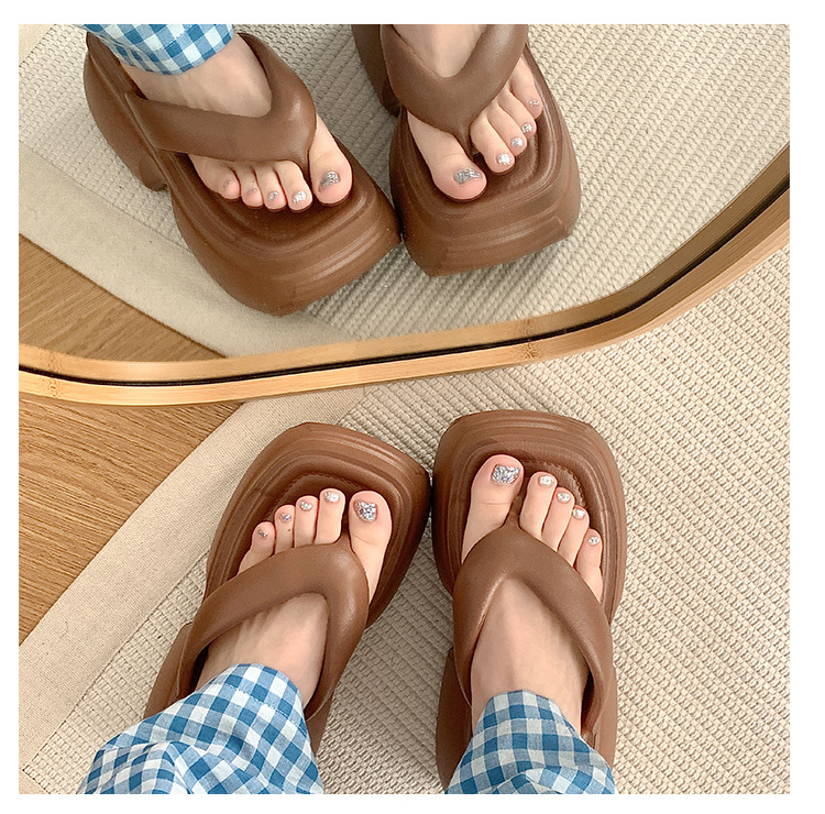 여름 패션 아우터웨어를 위한 여아용 새로운 두꺼운 밑창 EVA 슬리퍼 한국식 미끄럼 방지 및 높이 증가 해변 비치 샌들스토어 가기