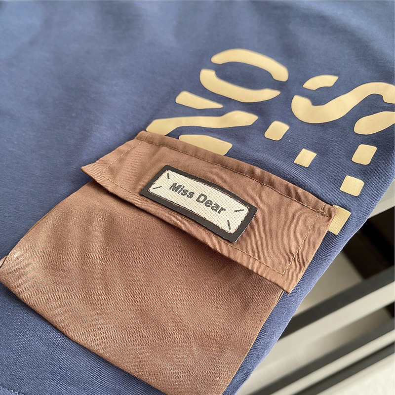 • 네이비 블루 라운드 넥 입체 포켓 반팔 슈트