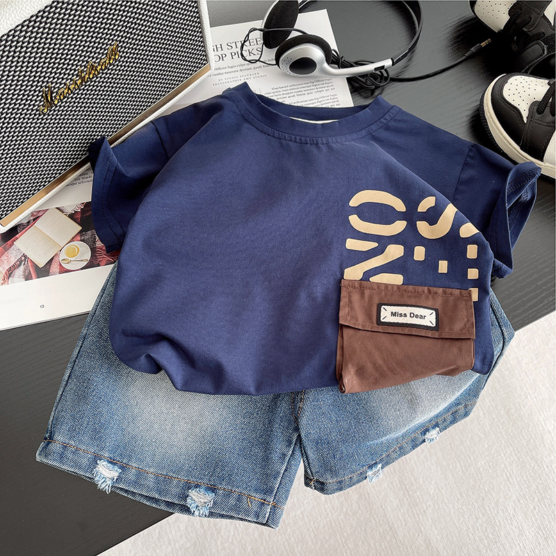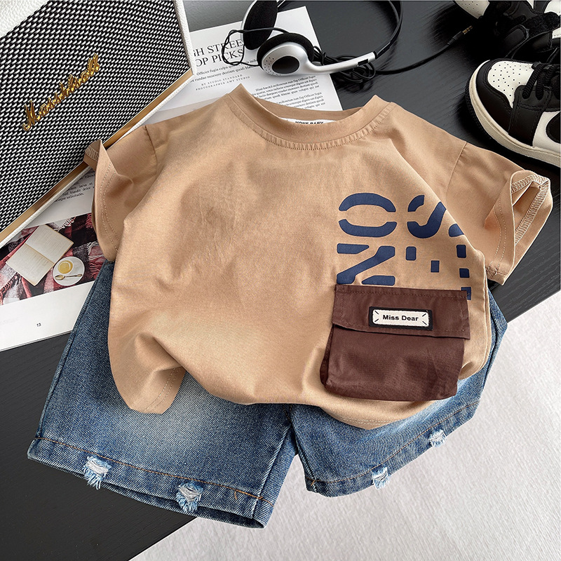 소년 여름 세트 서양식 2025 새로운 유행 어린이 얇은 아기의 반팔 투피스 아동복 유행 헤어스토어 가기