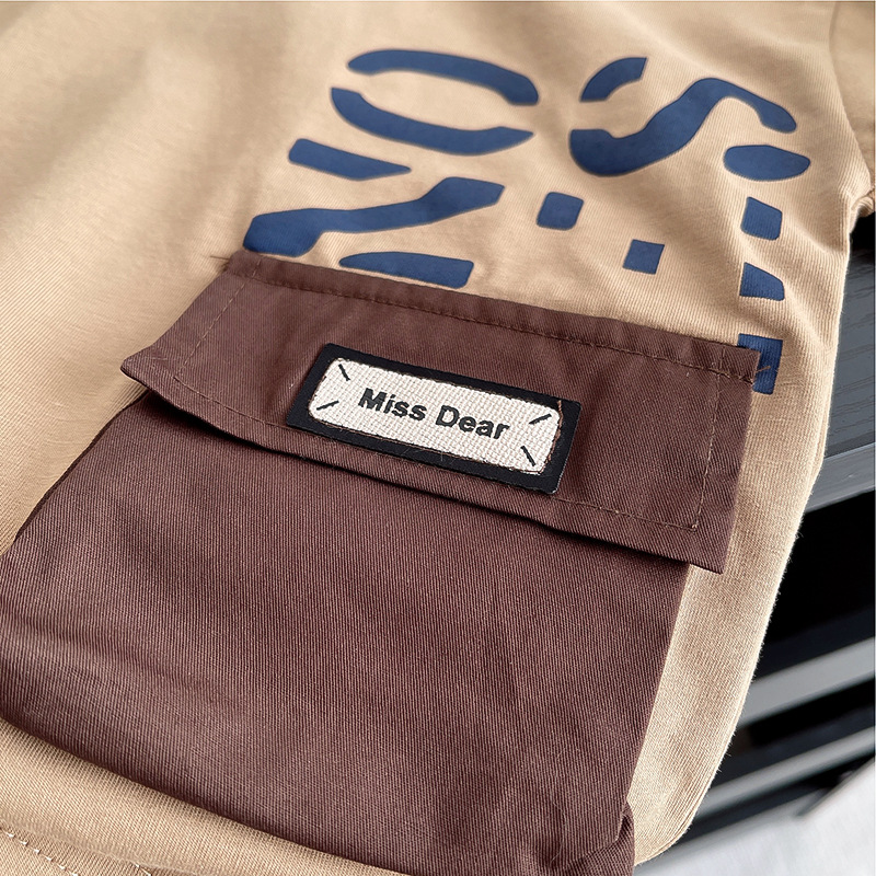 • 카키 라운드넥 입체 포켓 반팔 슈트