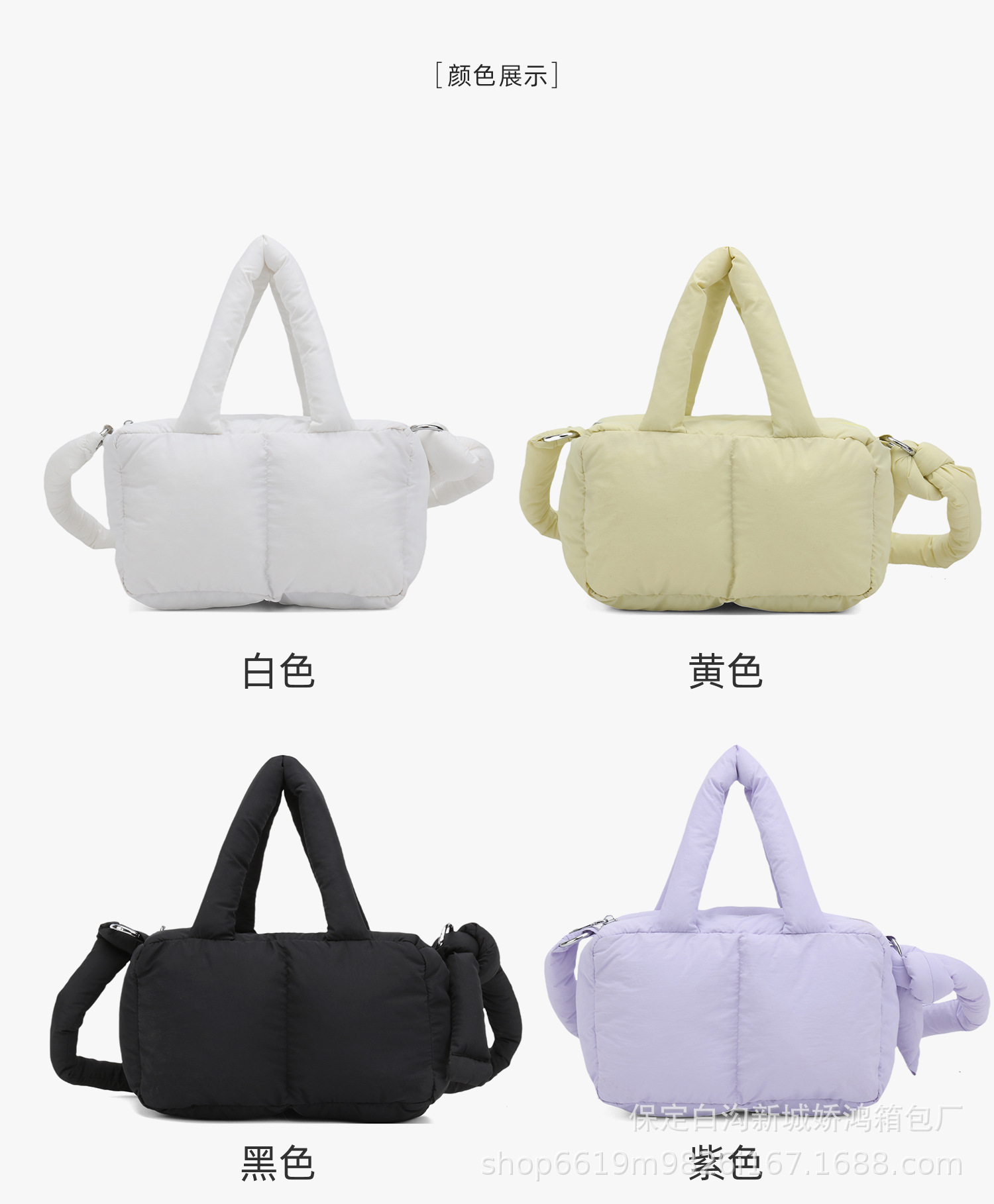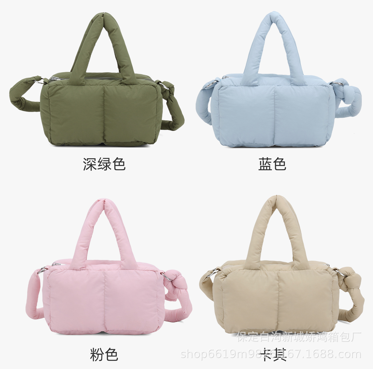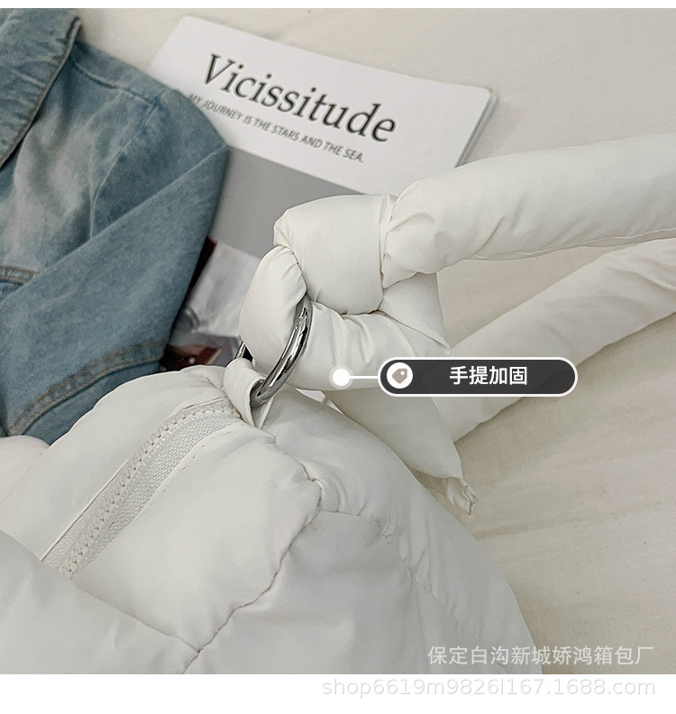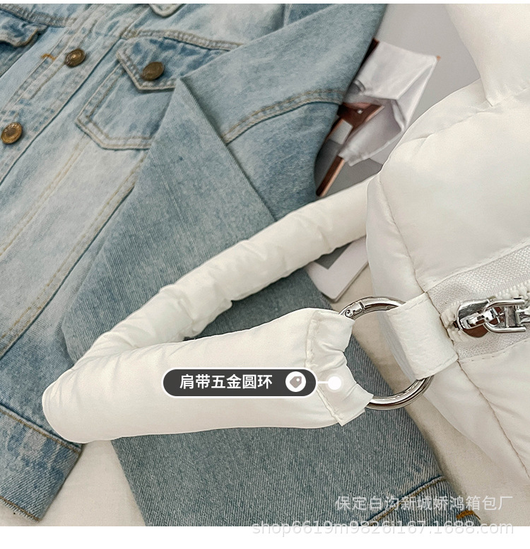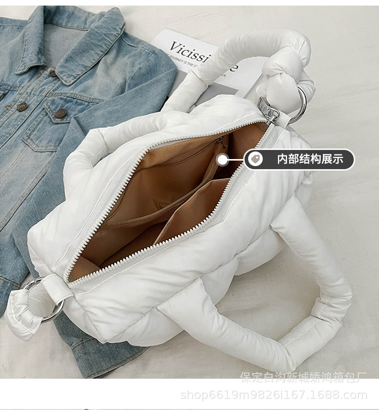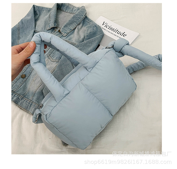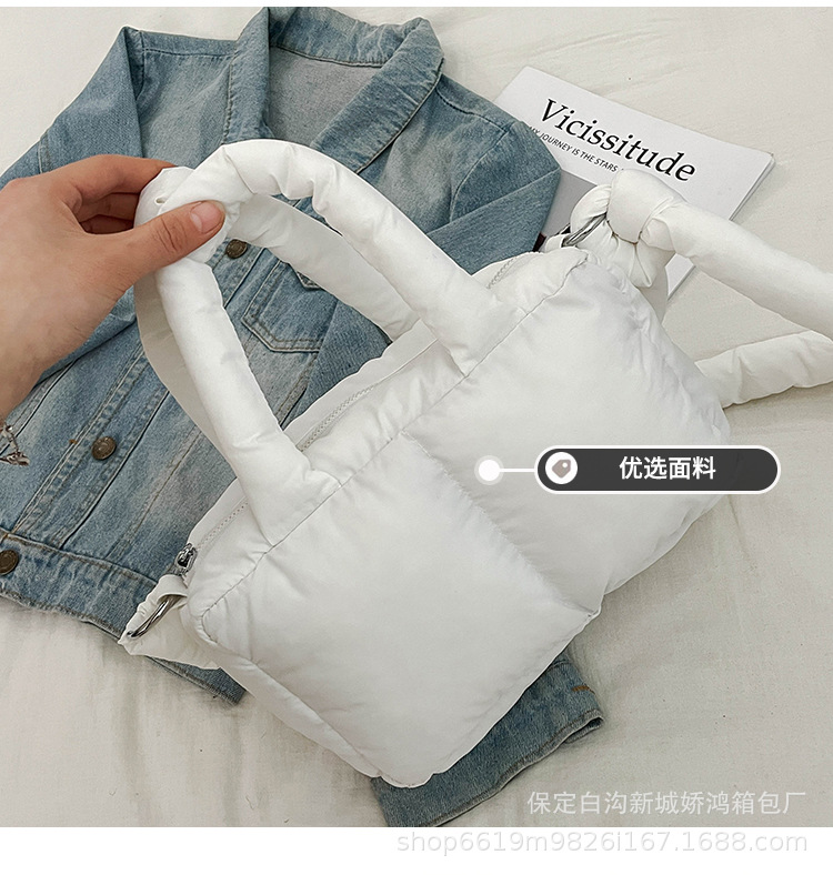국경 2025 면화로 채워진 핸드백 경량 패션 다운 백 여성 스퀘어 토트 백 캐주얼 올 매치 크로스 바디 백스토어 가기