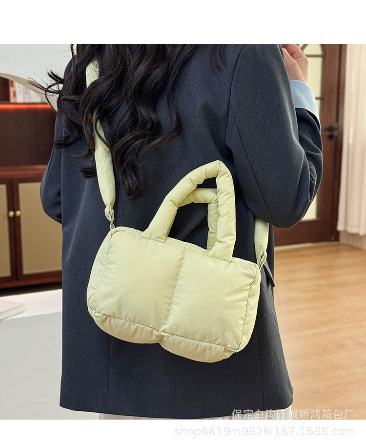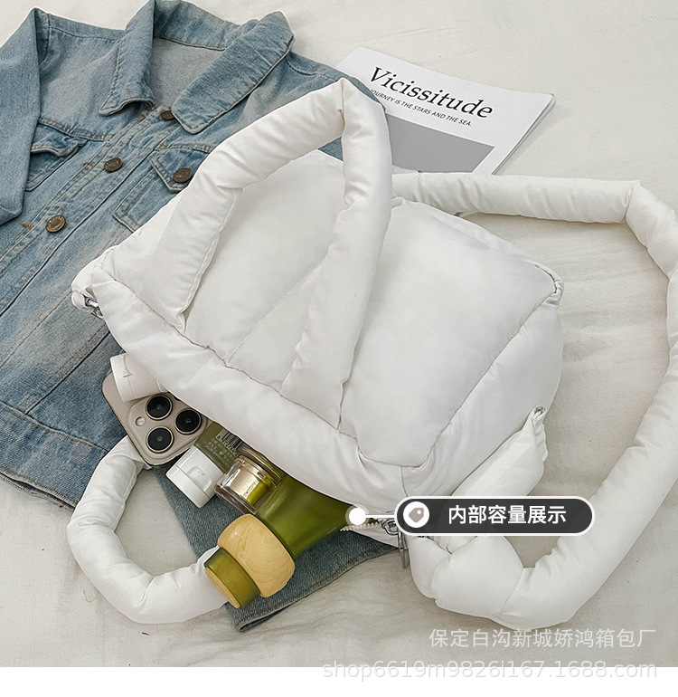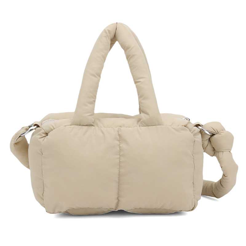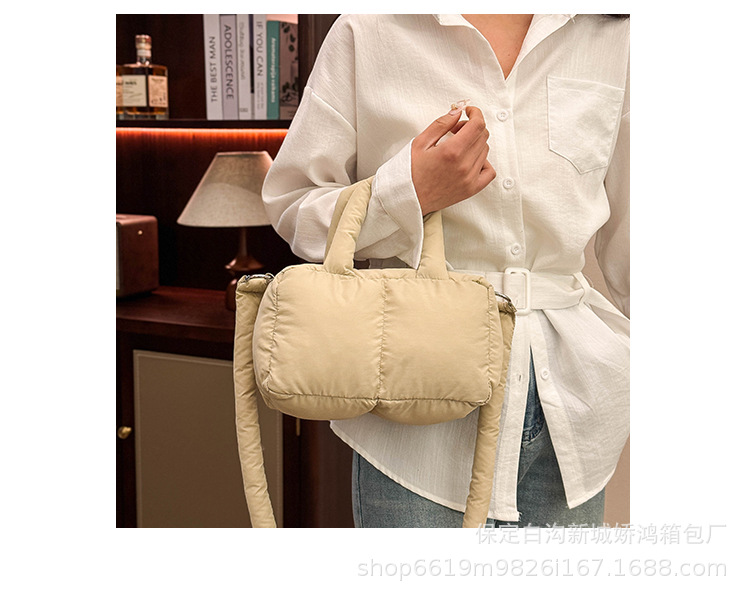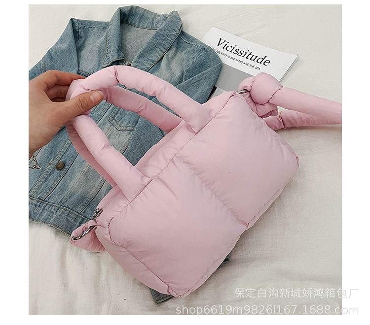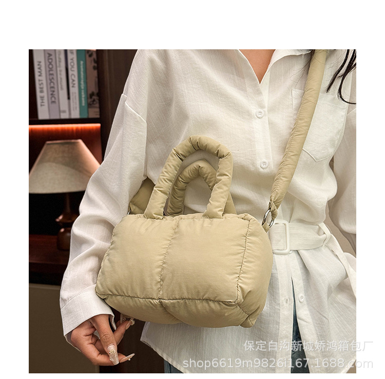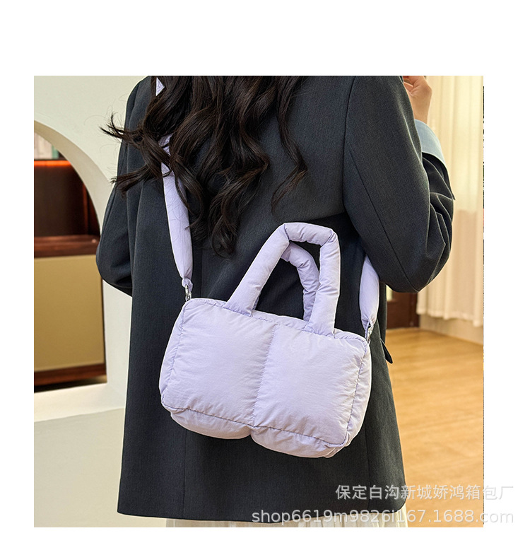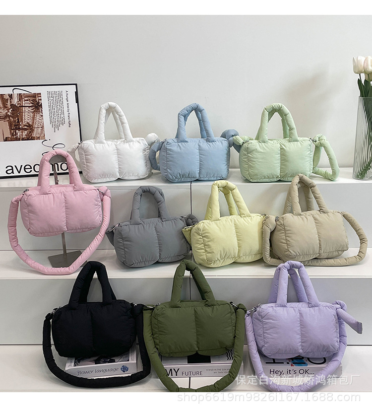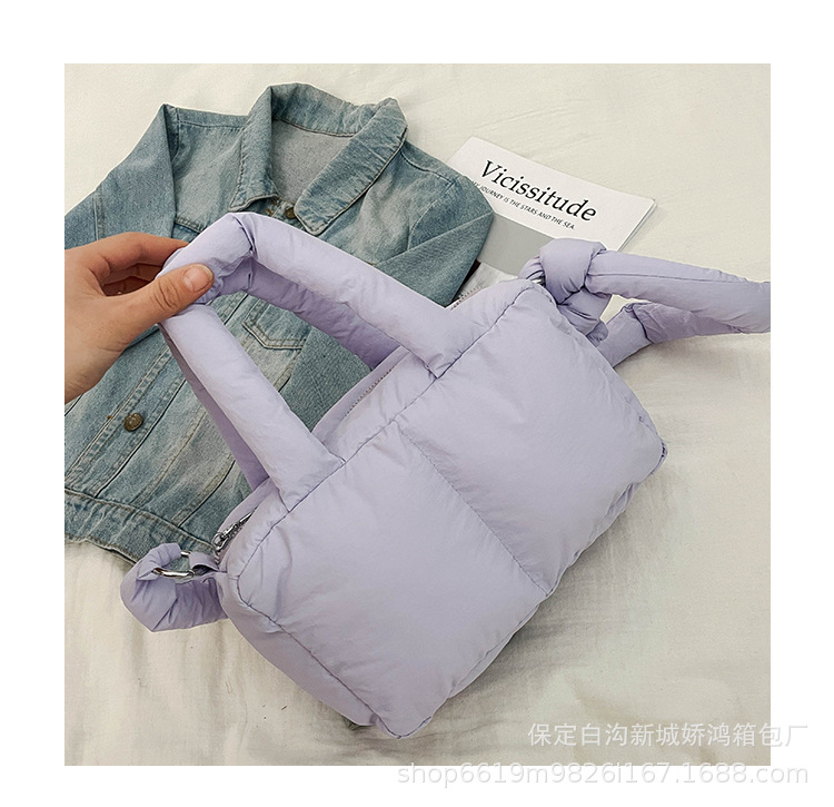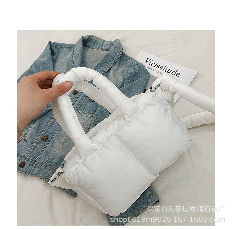 국경 2025 면화로 채워진 핸드백 경량 패션 다운 백 여성 스퀘어 토트 백 캐주얼 올 매치 크로스 바디 백