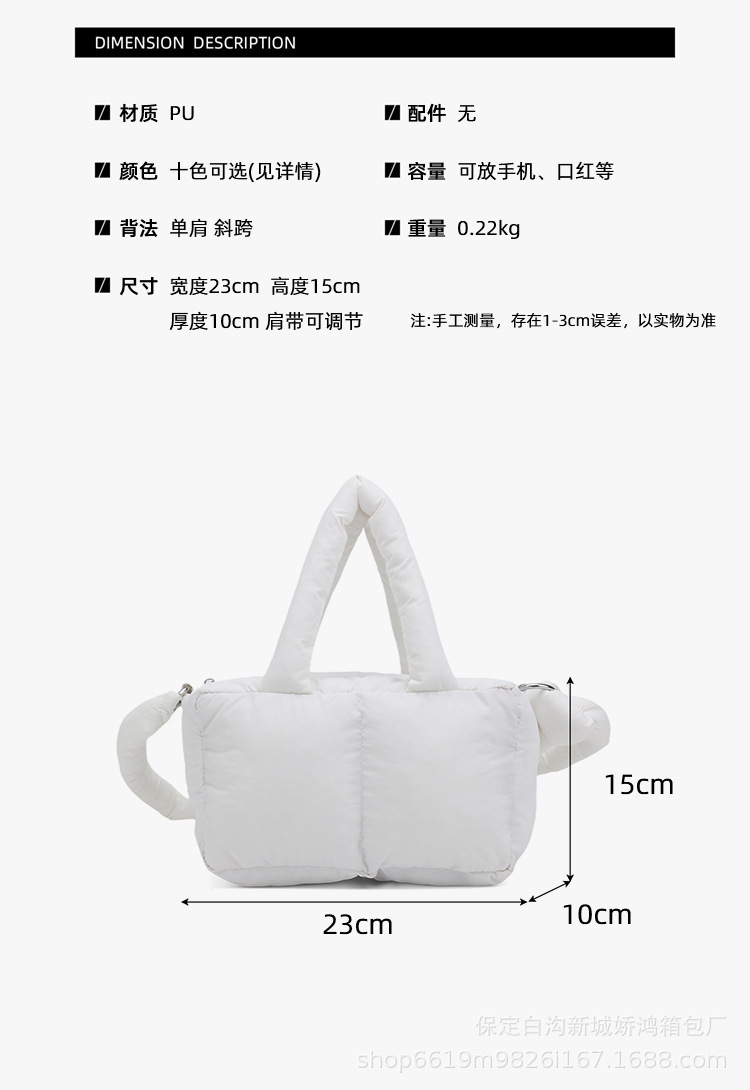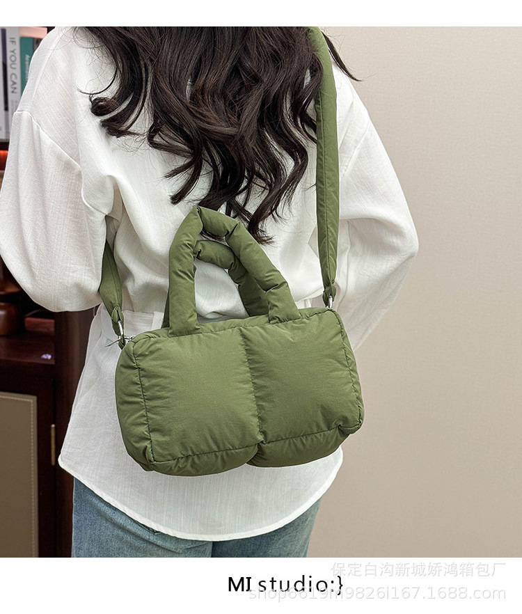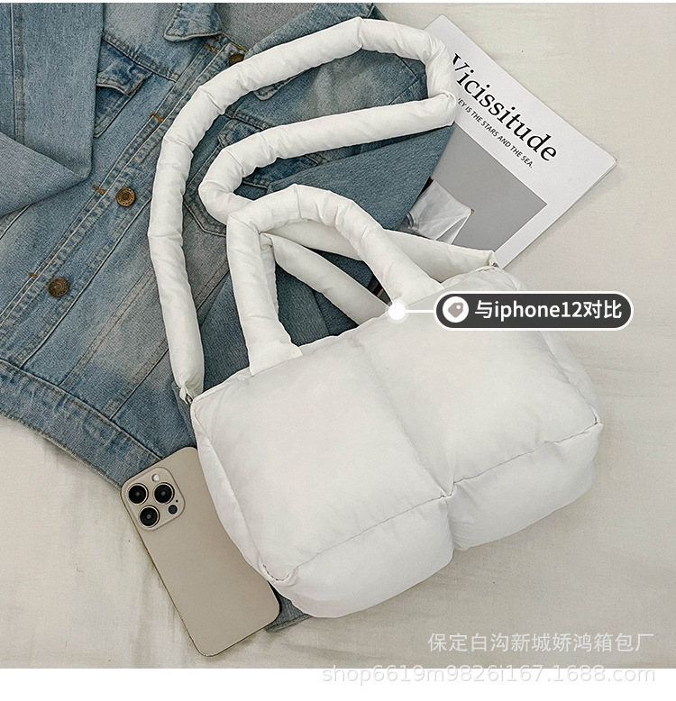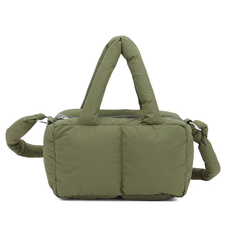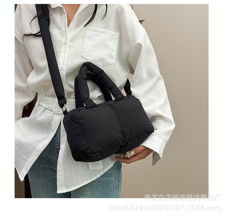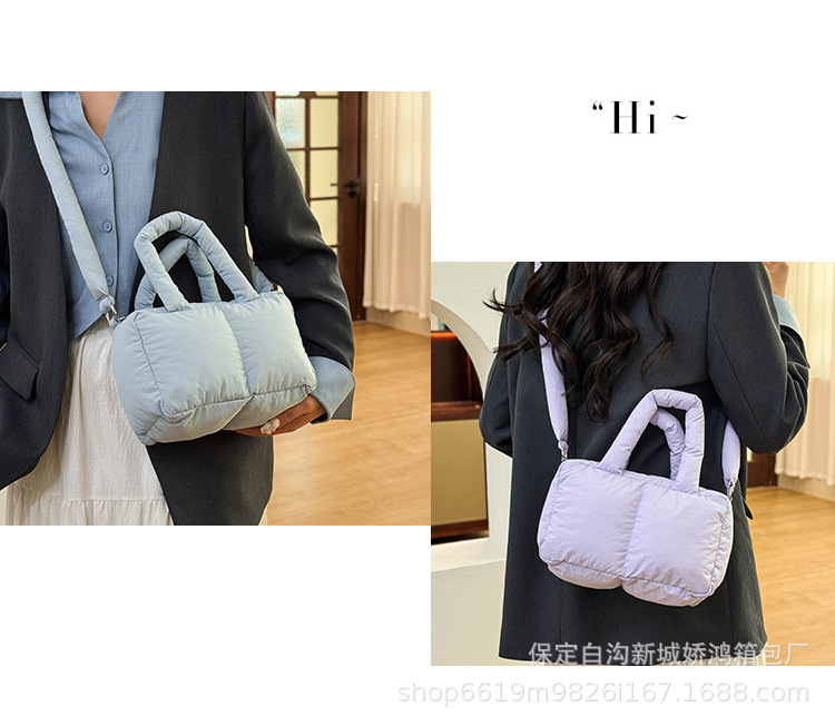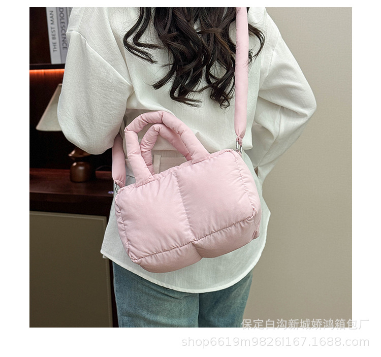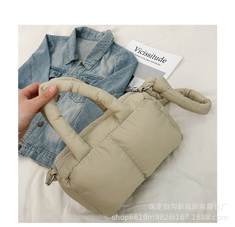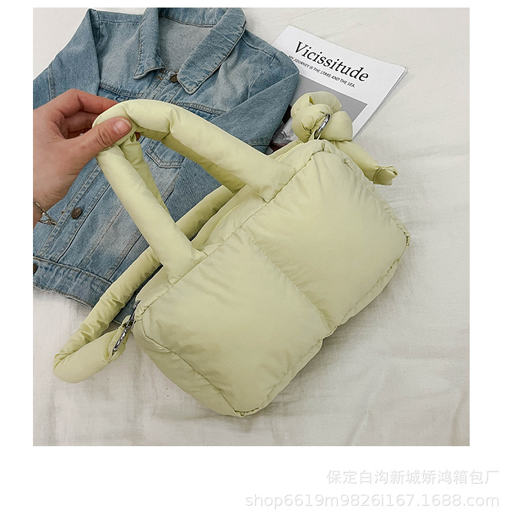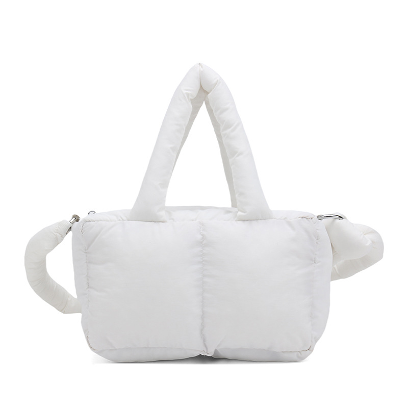 국경 2025 면화로 채워진 핸드백 경량 패션 다운 백 여성 스퀘어 토트 백 캐주얼 올 매치 크로스 바디 백