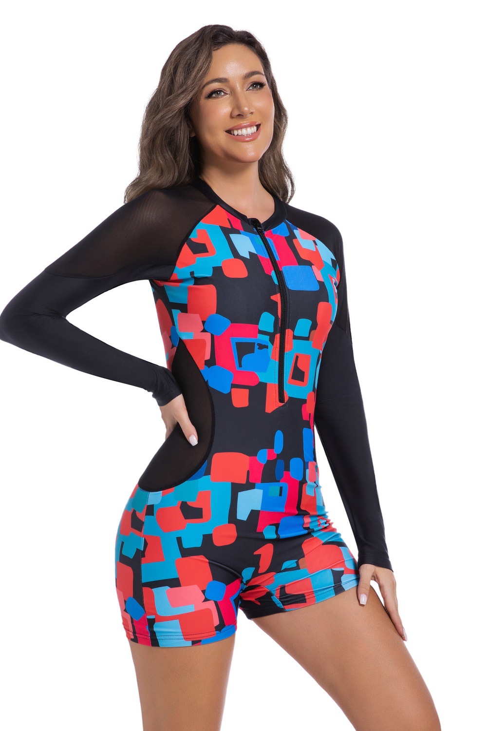 국경 간 유럽과 미국의 원피스 스포츠 수영복 긴팔 복서 서핑 슈트 잠수복 여성 수영복 해파리 슈트 X009스토어 가기