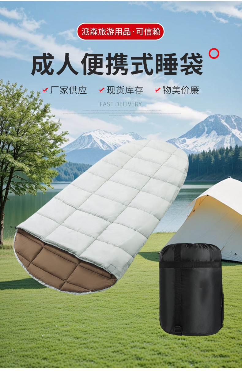 새로운 야외 캠핑 방수 비상 성인 슬리핑 백 두꺼운 따뜻한 사계절 사용 가능한 가벼운 봉투 슬리핑 백