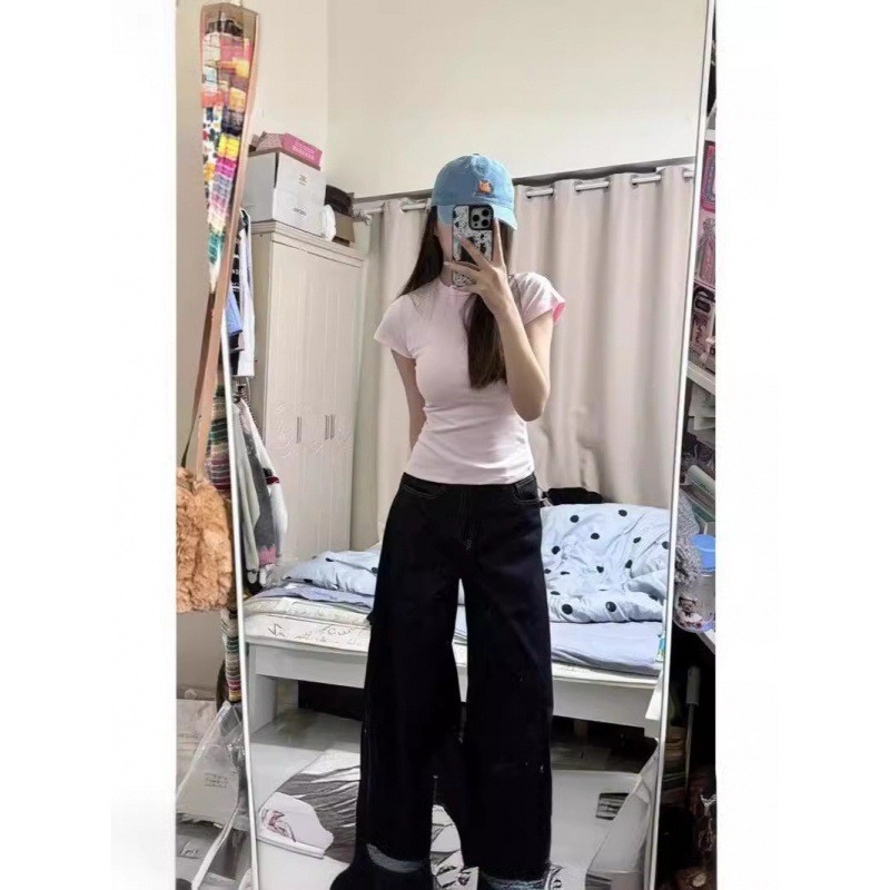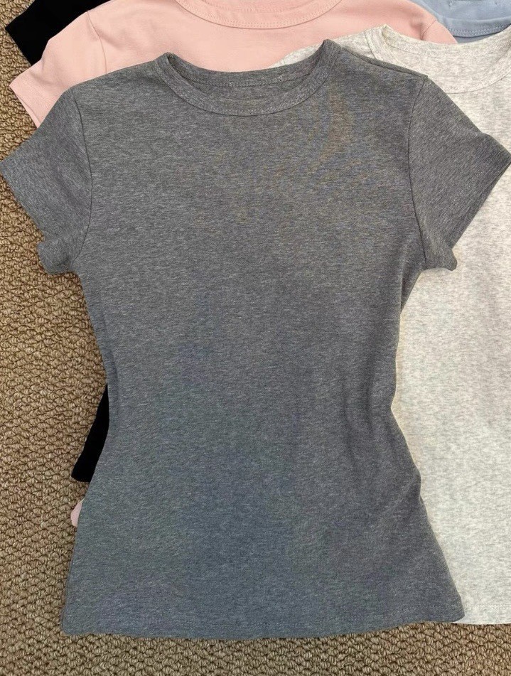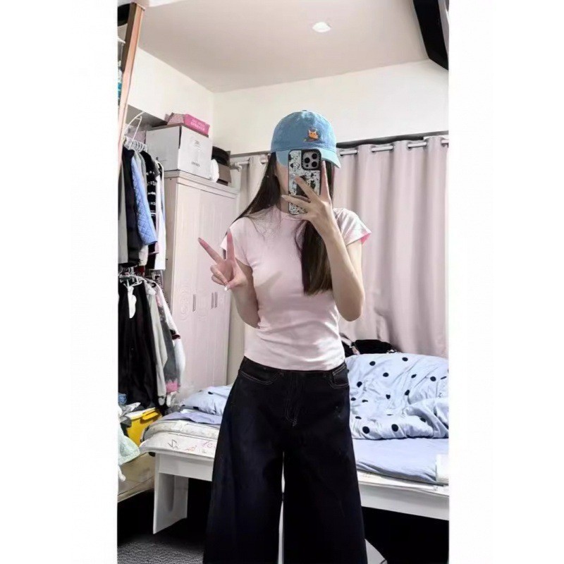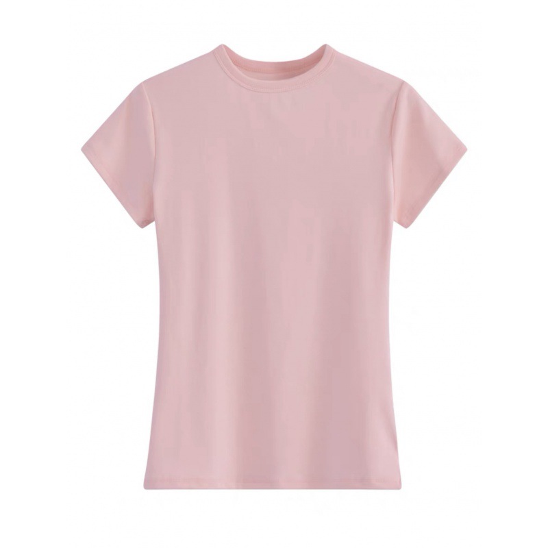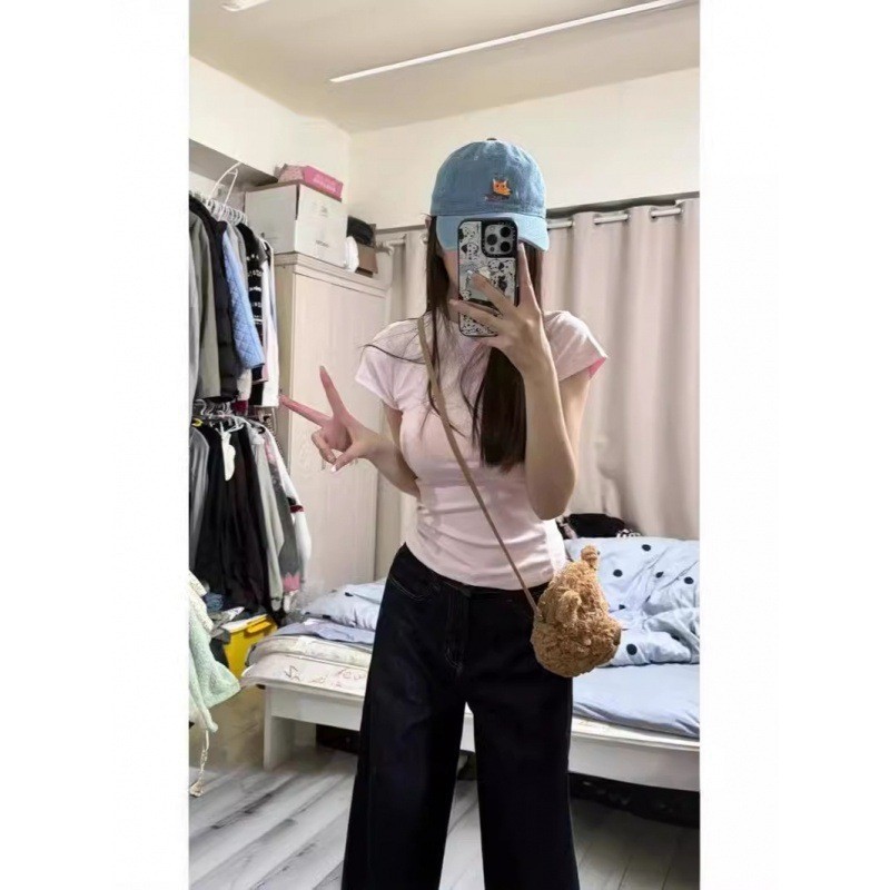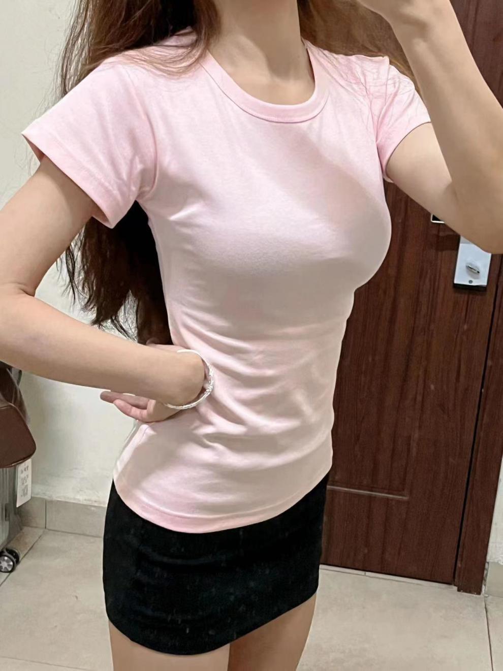 Fortune House Girl 같은 스타일의 여성용 핑크 오른쪽 어깨 반팔 티셔츠, 여성용 타이트 슬리밍 허리 Pure Desire Hot Girl Bottoming Top스토어 가기