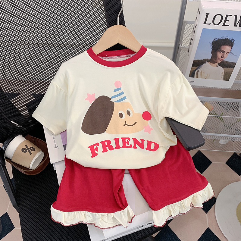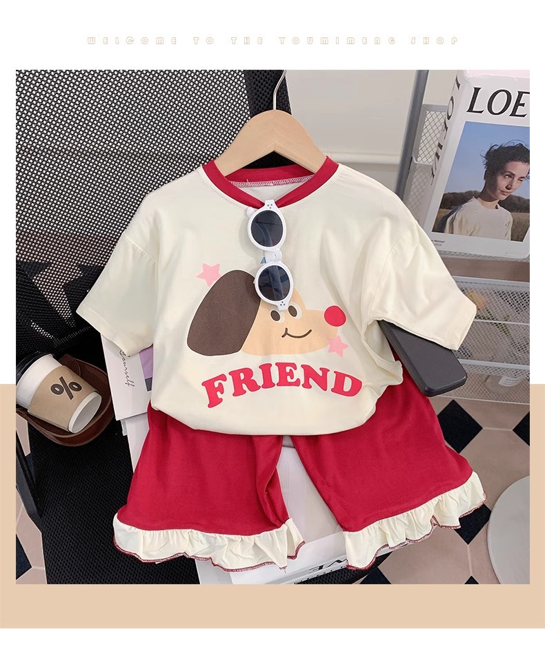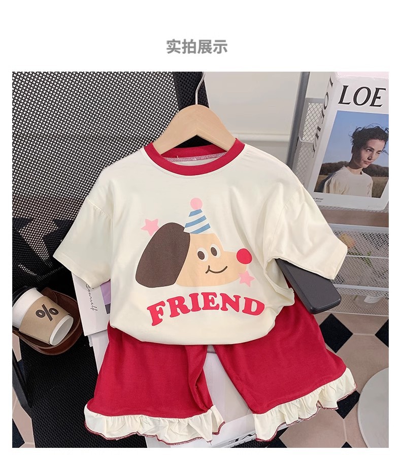 모달 어린이 잠옷 소녀 여름 얇은 에어컨 홈 옷 어린이 소녀 아기의 반팔 세트 여름스토어 가기