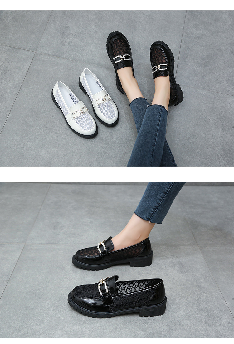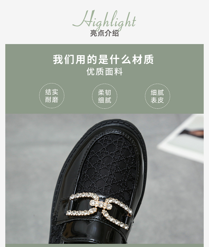2025년 여름 신작 인터넷 연예인 라인스톤 라운드 토 여성용 작은 가죽 신발 영국식 두꺼운 밑창 로우 힐 슬립온 로퍼 여성용 신발스토어 가기
