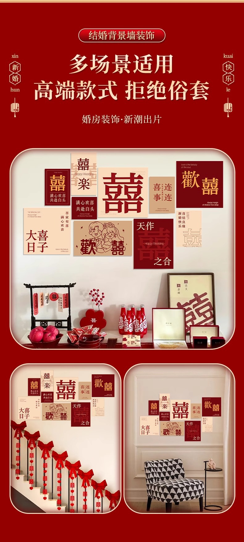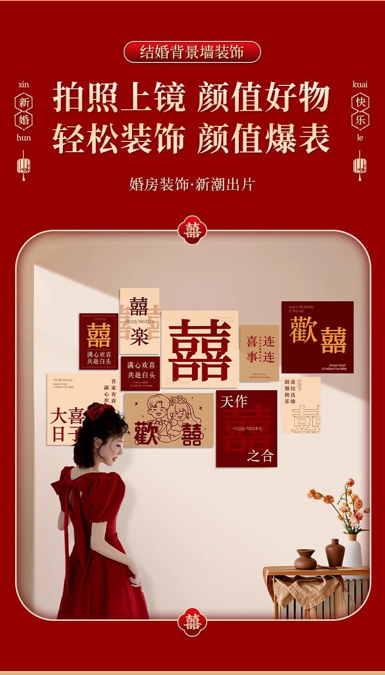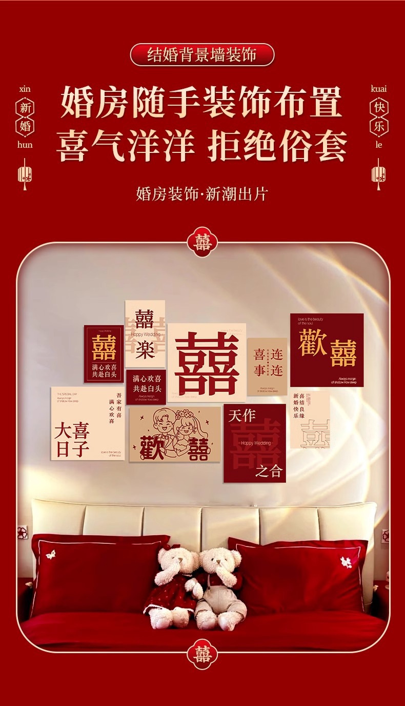 웨딩 룸 분위기 레이아웃 웨딩 세트 벽 장식 해피 캐릭터 KT 보드 침실 침실 거실 소파 배경 벽스토어 가기
