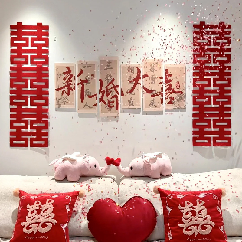 웨딩 룸 분위기 레이아웃 웨딩 세트 벽 장식 해피 캐릭터 KT 보드 침실 침실 거실 소파 배경 벽