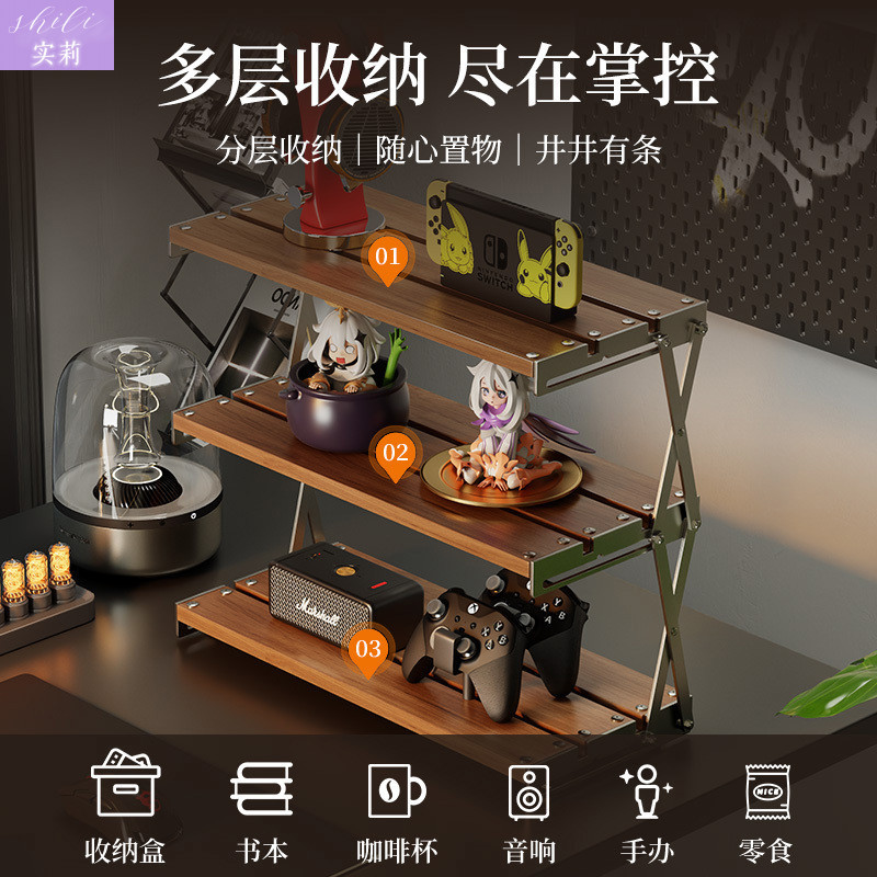 데스크탑 스토리지 랙 E-스포츠 휴대용 접이식 스토리지 랙 높은 계층화 된 선반 사무실 스테인레스 스틸 멀티 레이어 선반