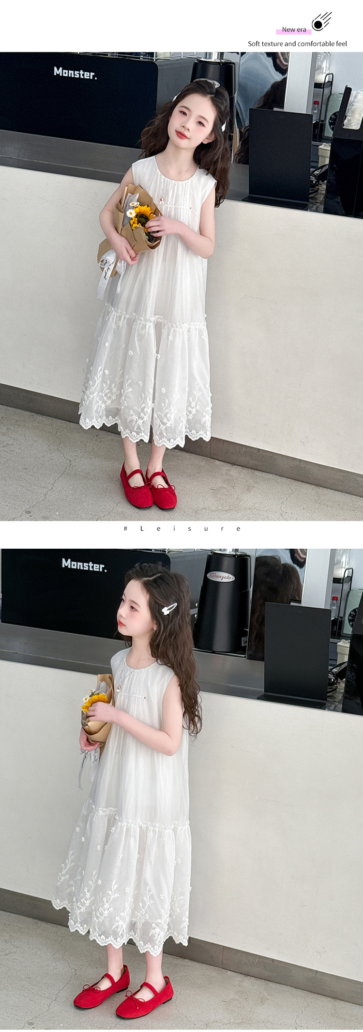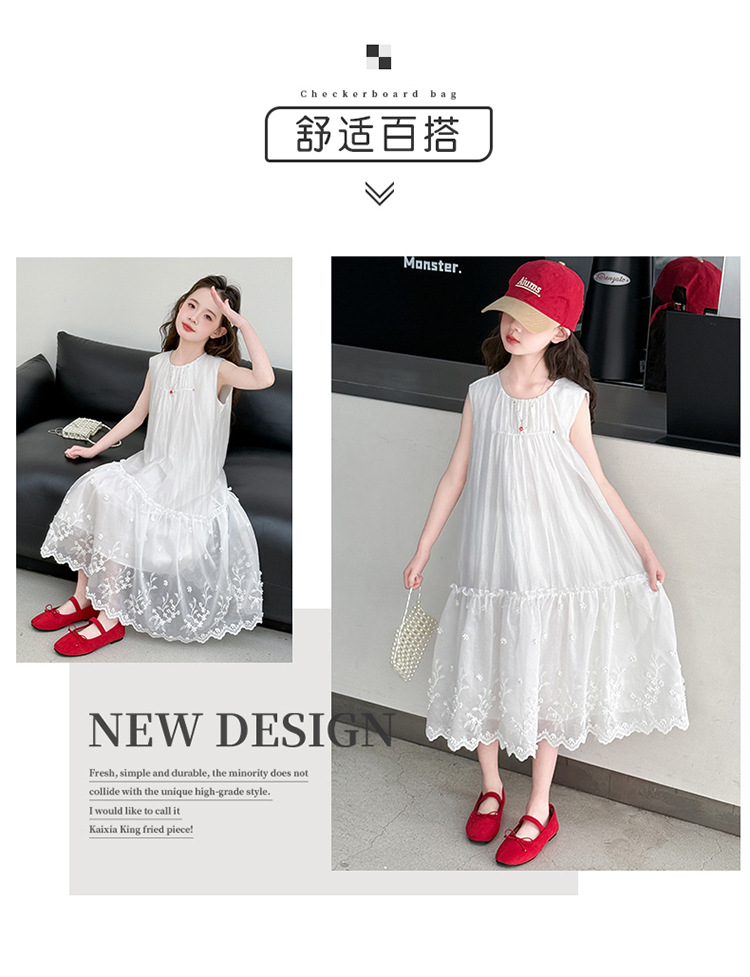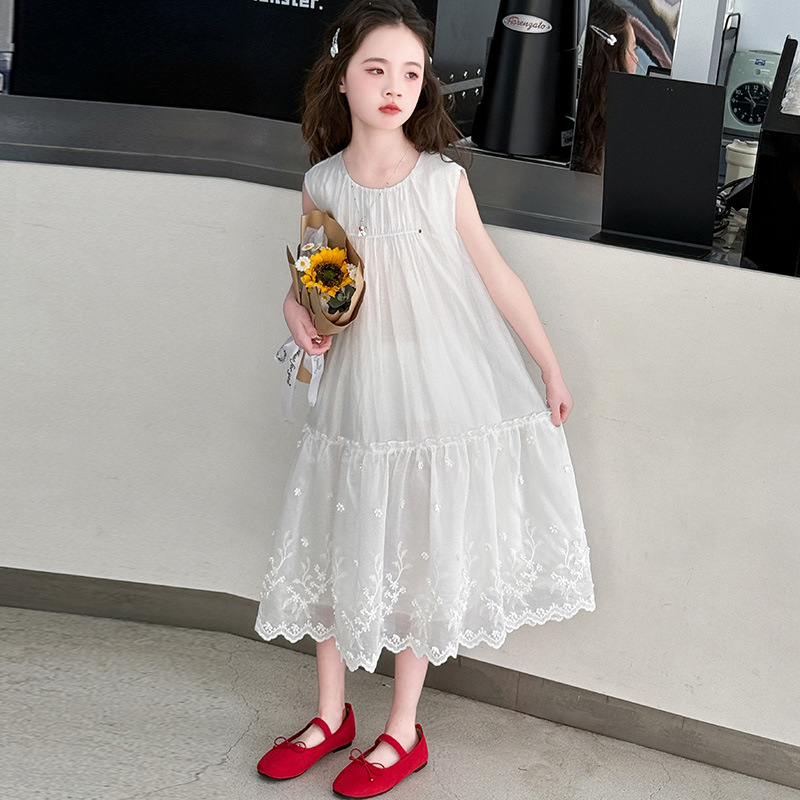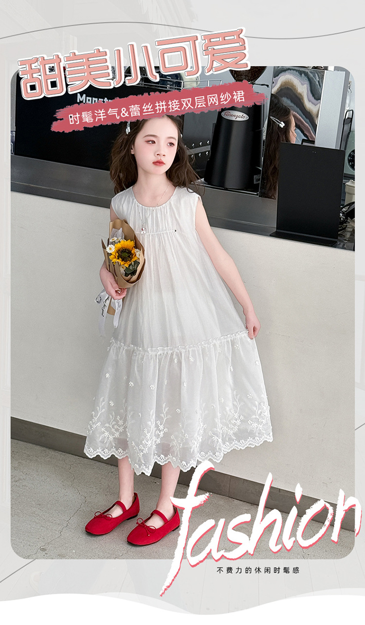 소녀의 원피스 2025 여름 새 스타일 소녀의 서양식 레이스 바느질 치마 어린이 여름 화이트 메쉬 원피스스토어 가기