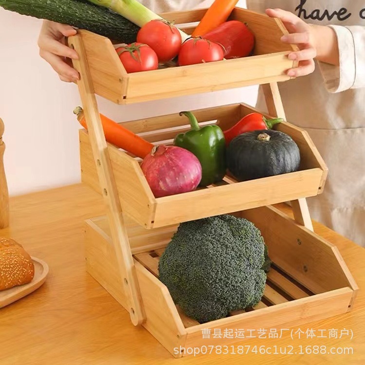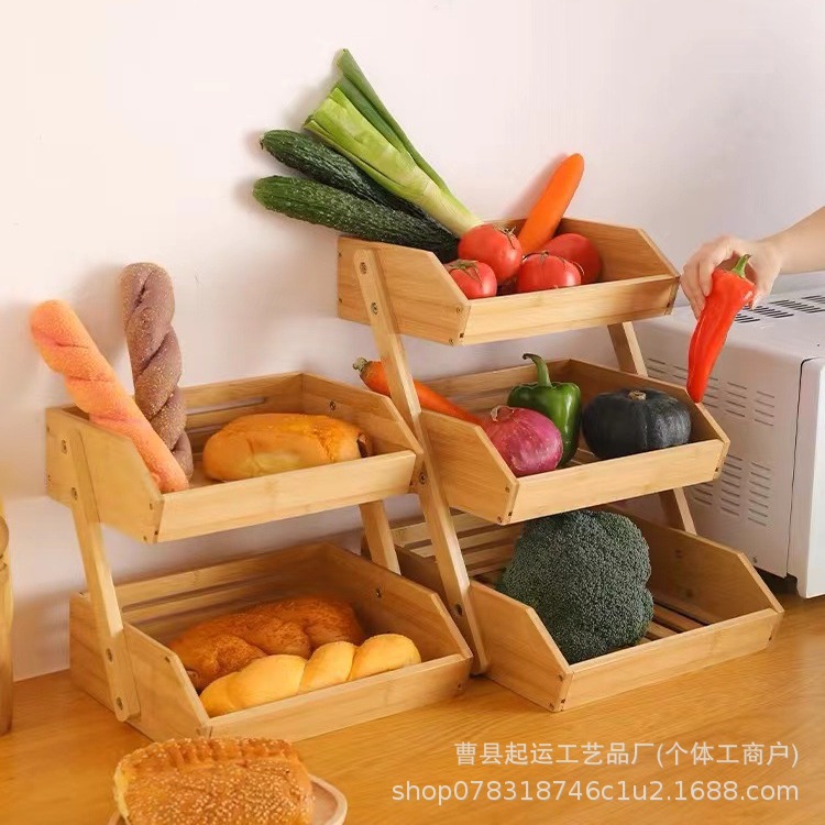나무로 만든 과일 및 채소 보관 및 물빠짐대, 다층 조립식 가정용 주방 조리대 정리 수납 선반스토어 가기