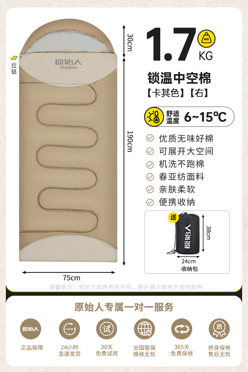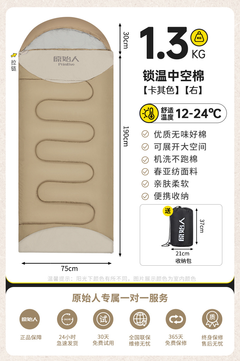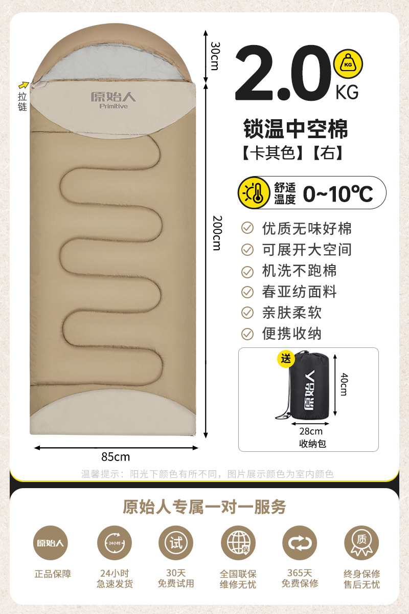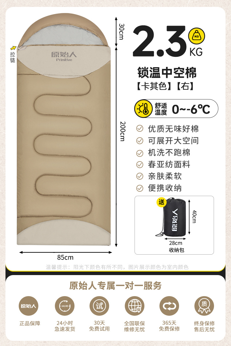 • [오른쪽] 카키 - 2.3kg [밤새 방한형/3겹 온도 잠금] 무료 보관가방