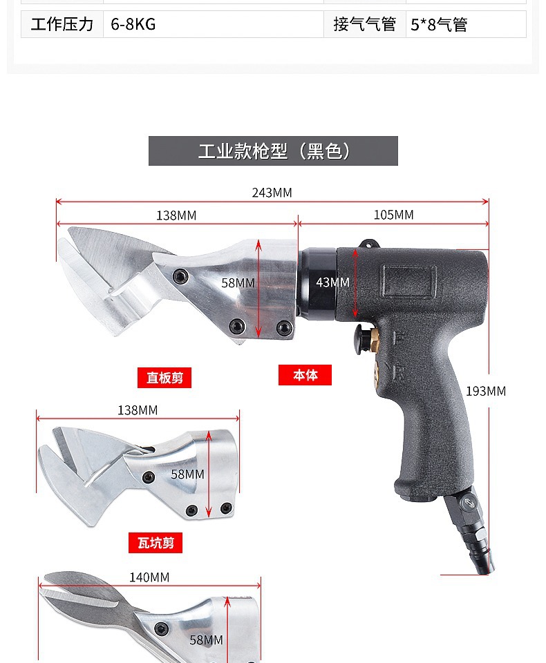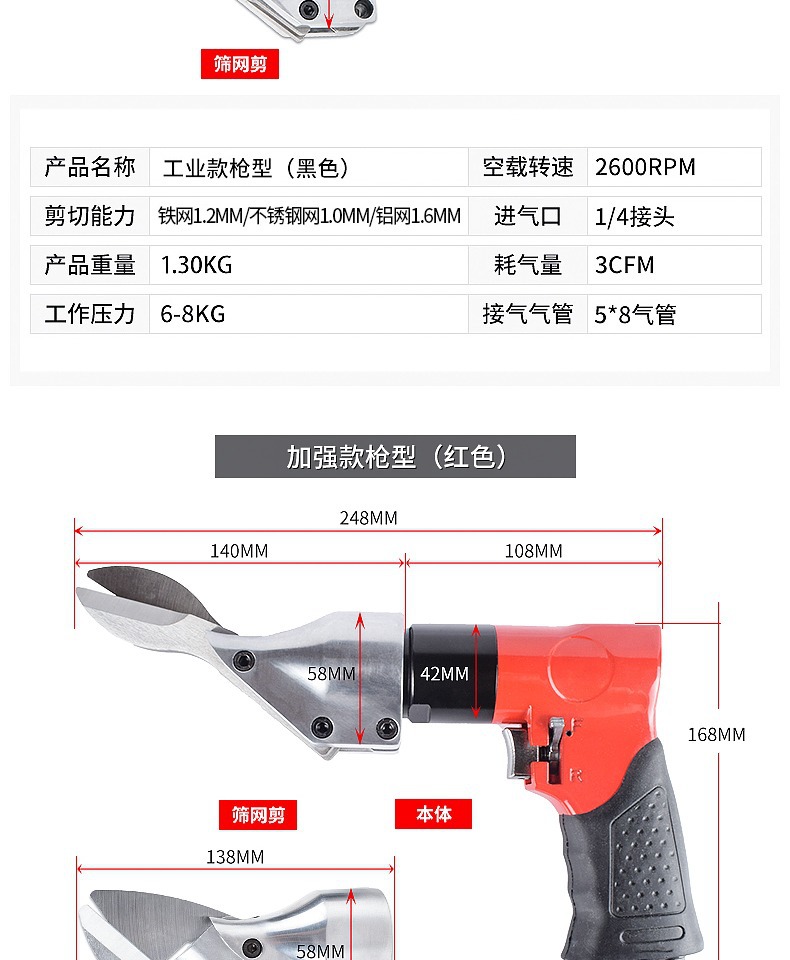 Kubo King 공압 가위, 가스 가위 헤드, 강력한 철판 가위, 산업용 등급 다이아몬드 메쉬, 스테인레스 스틸 플레이트 거즈 메쉬