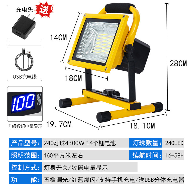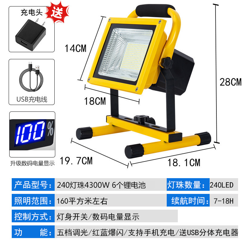충전식 홍수 조명 가정용 비상 조명 정전 대기 야외 현장 건설 휴대용 슈퍼 밝은 캠핑 조명 재고스토어 가기