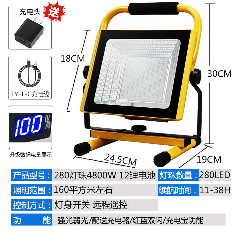 충전식 홍수 조명 가정용 비상 조명 정전 대기 야외 현장 건설 휴대용 슈퍼 밝은 캠핑 조명 재고