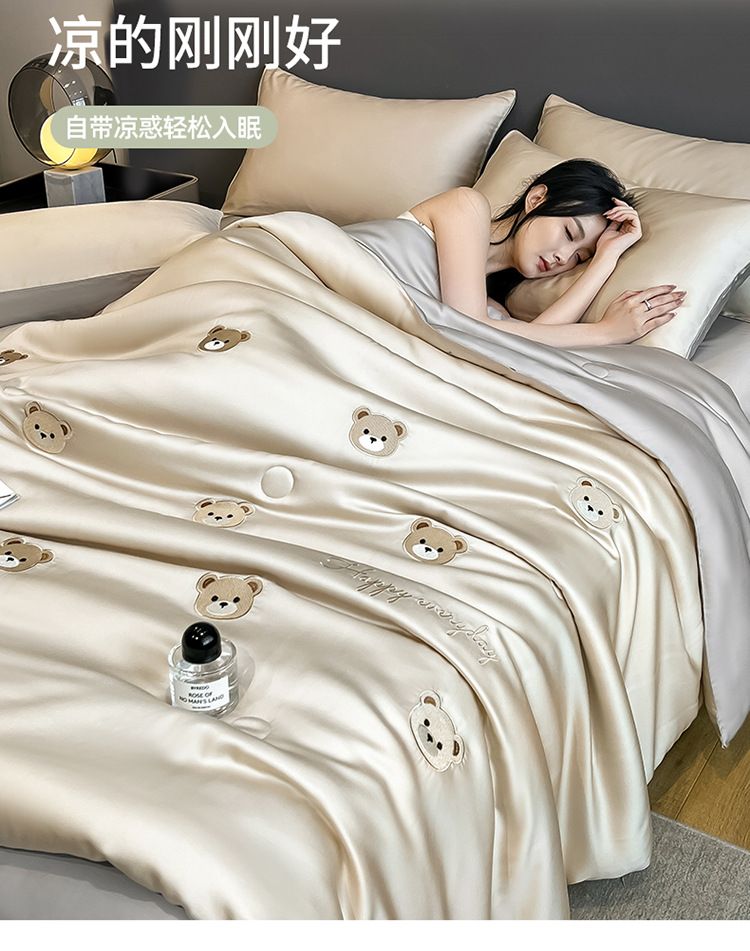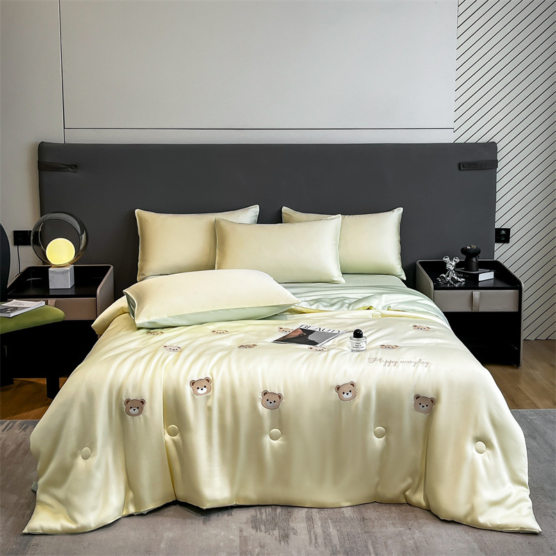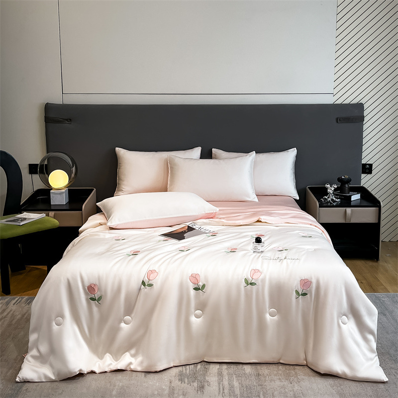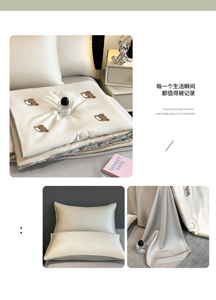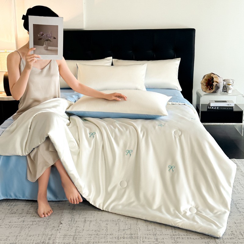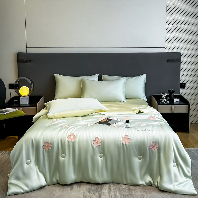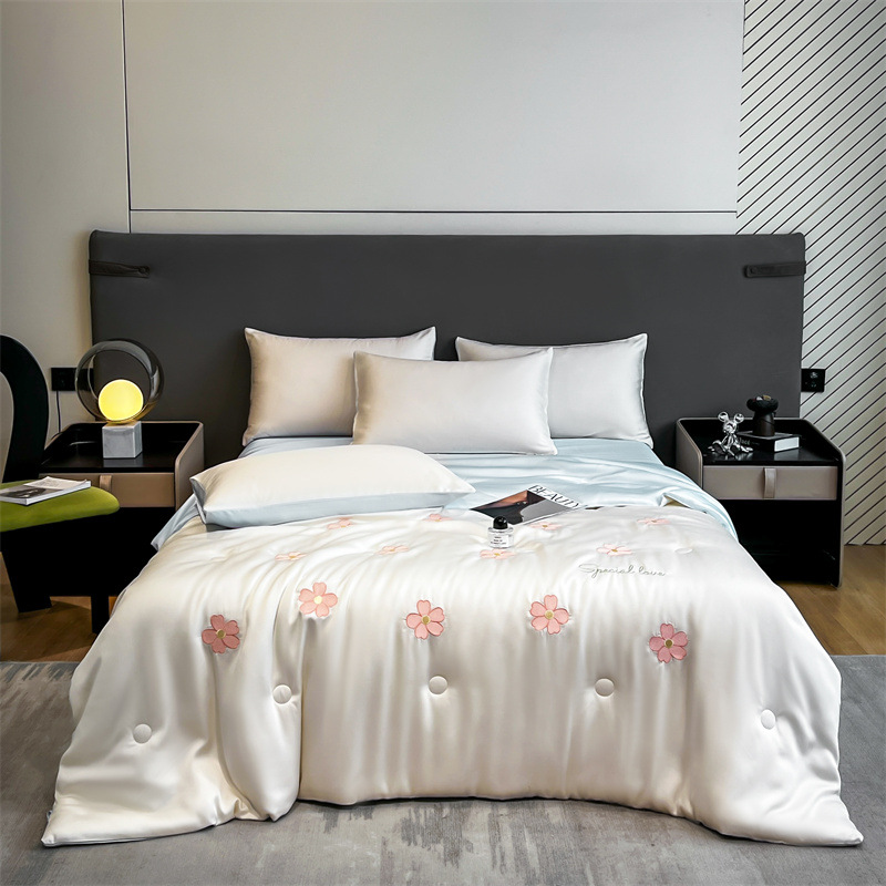 자수 아이스 실크 여름 시원한 이불 4종 세트 세탁 가능 시원한 에어컨 이불 여름 얇은 이불 여름 선물 여름 이불