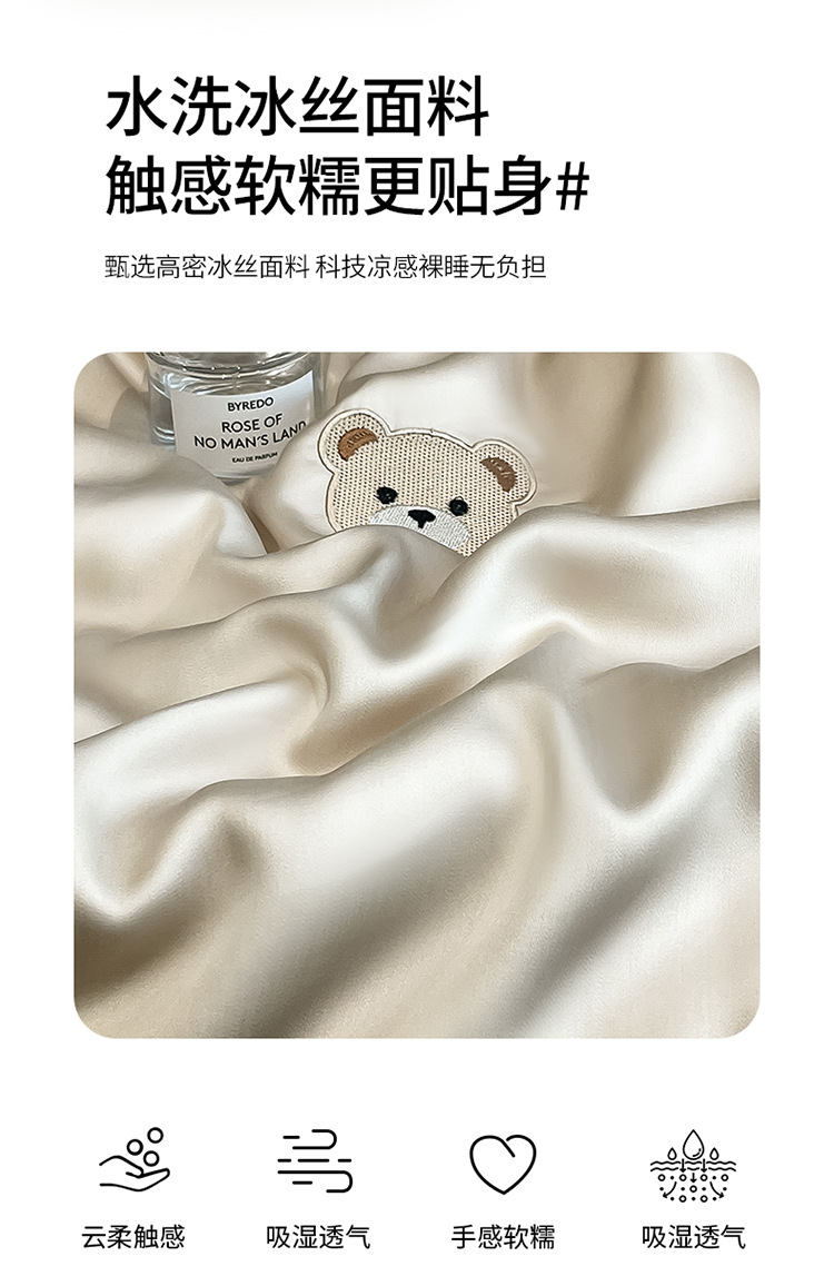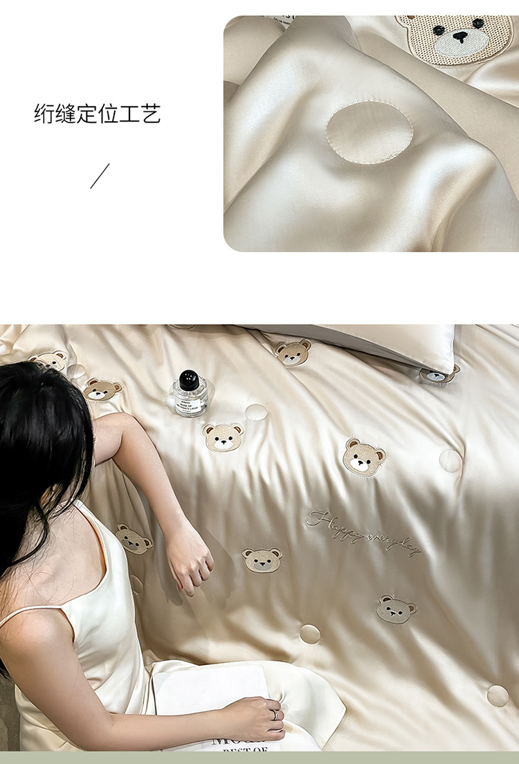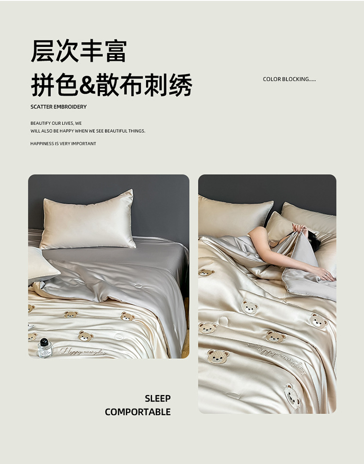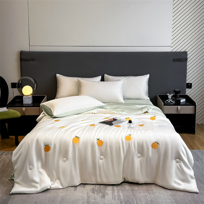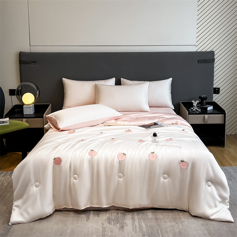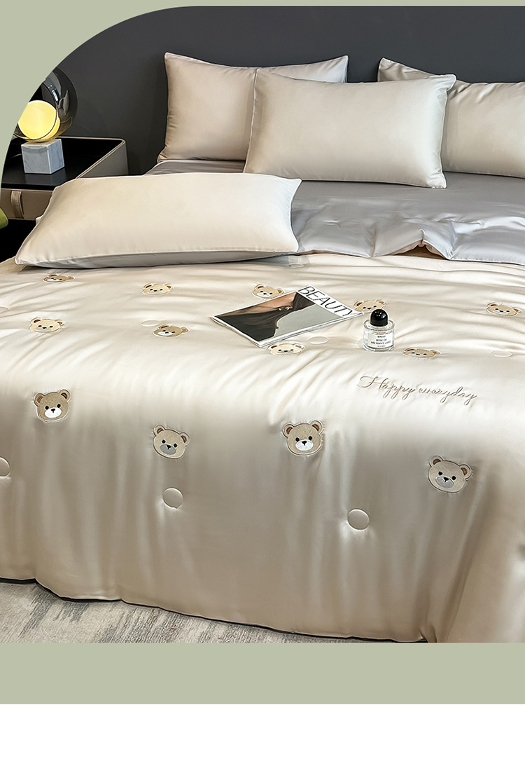 자수 아이스 실크 여름 시원한 이불 4종 세트 세탁 가능 시원한 에어컨 이불 여름 얇은 이불 여름 선물 여름 이불