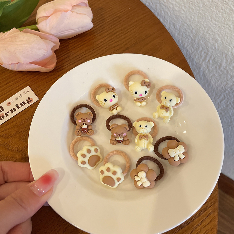 • 6#브라운 키티 고양이 머리끈 10종 세트