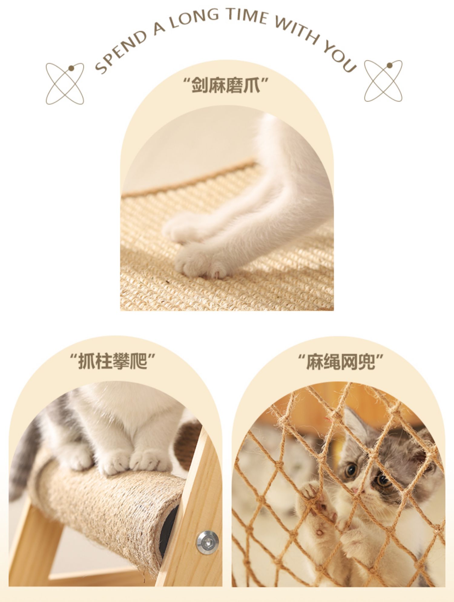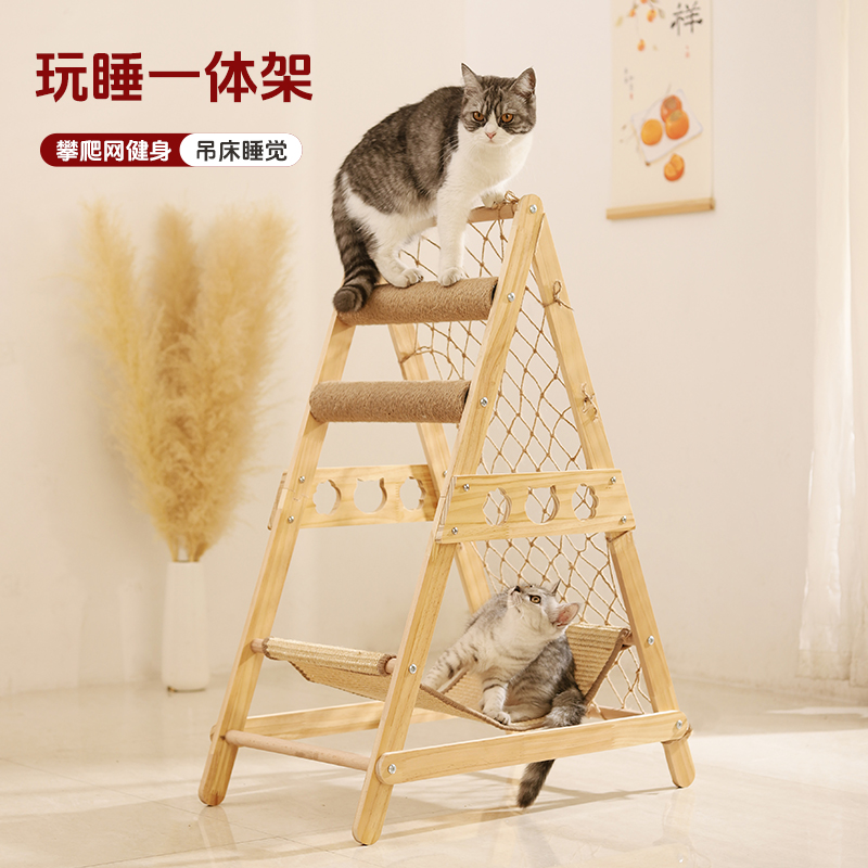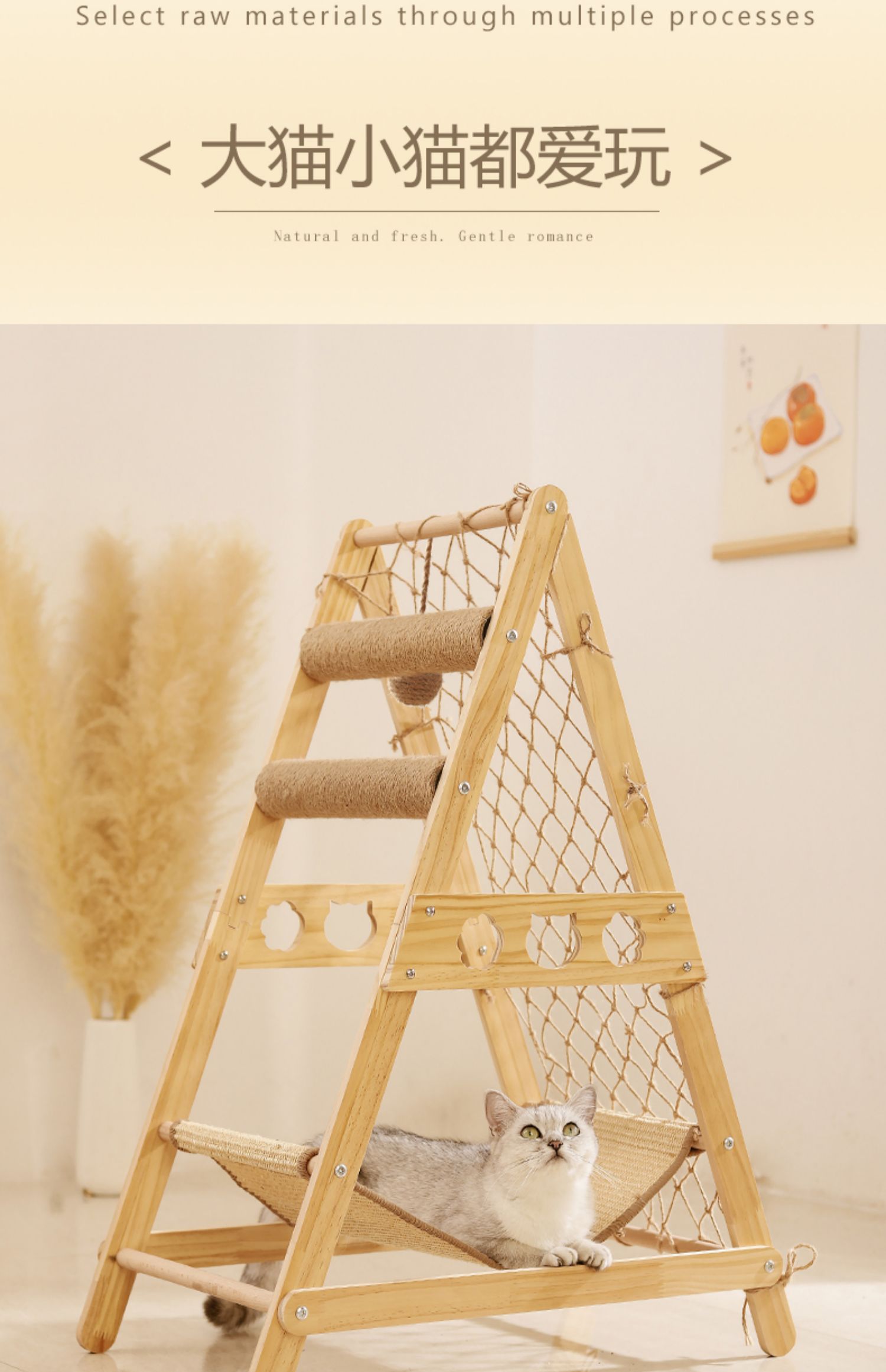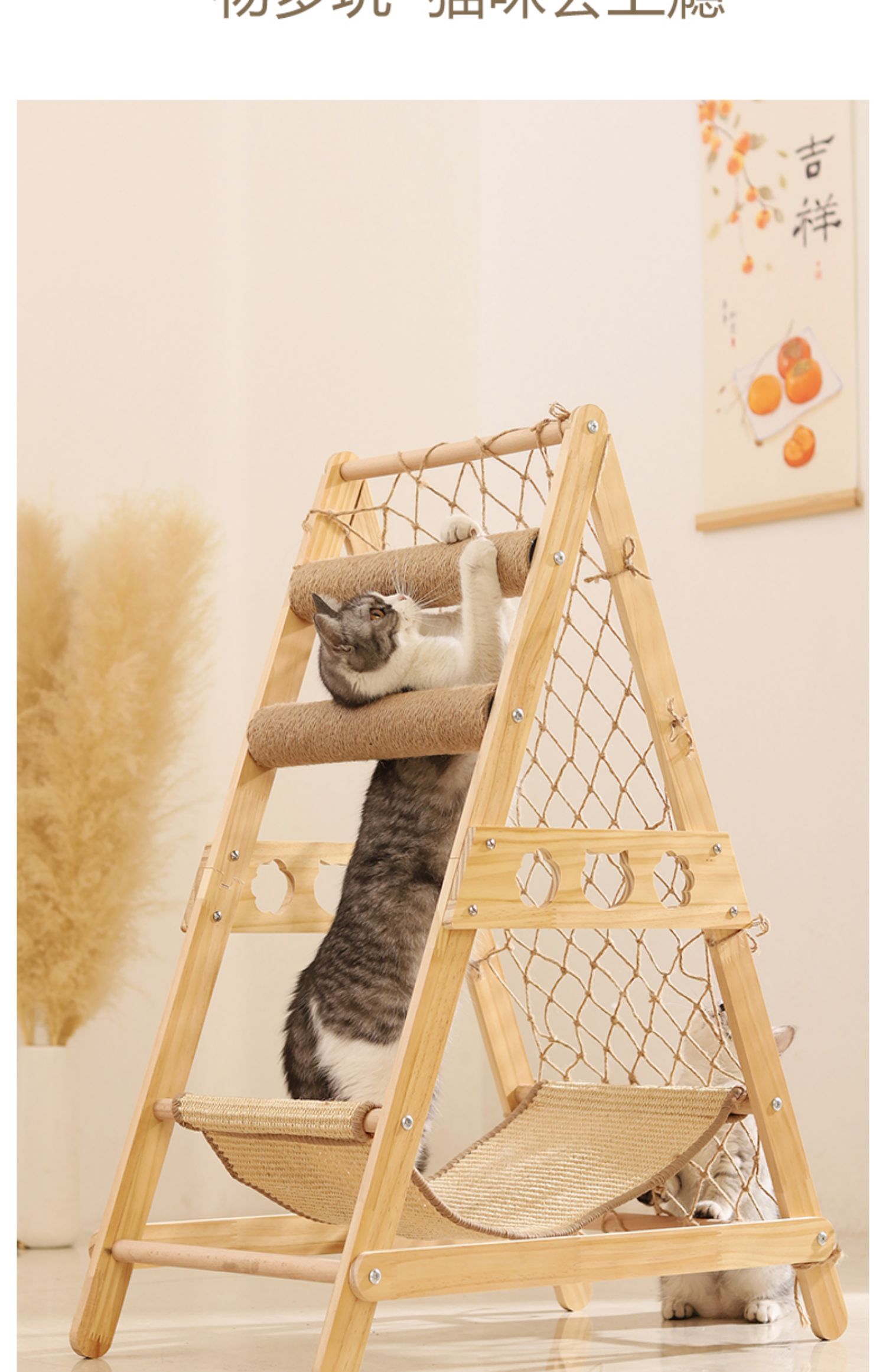 클라이밍 네트 원목 고양이 클라이밍 프레임 고양이 둥지 고양이 트리 일체형 가정용 사이잘 매트 고양이 스크래치 컬럼 소형 삼각형 고양이 선반