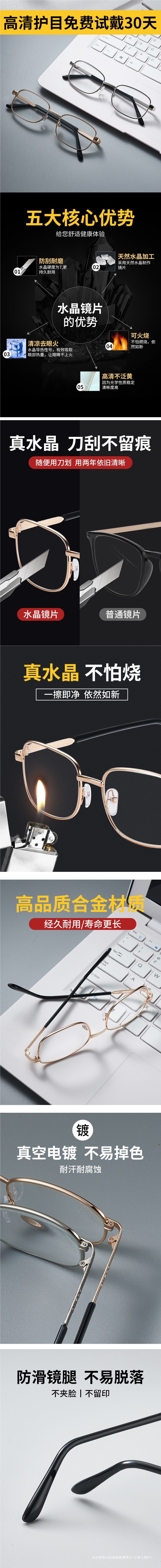 인기 있는 동해 크리스탈 유리 고화질 눈 보호 및 피로 방지 Xiaohongshu Douyin 동일한 제조업체 도매 독서 안경스토어 가기