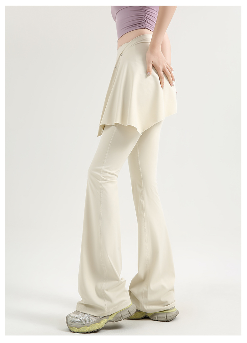 2 조각 높은 허리 긴 요가 바지 여성용 마이크로 플레어 바지 예술 커튼 외부 착용 달리기 스포츠 피트니스 긴 바지