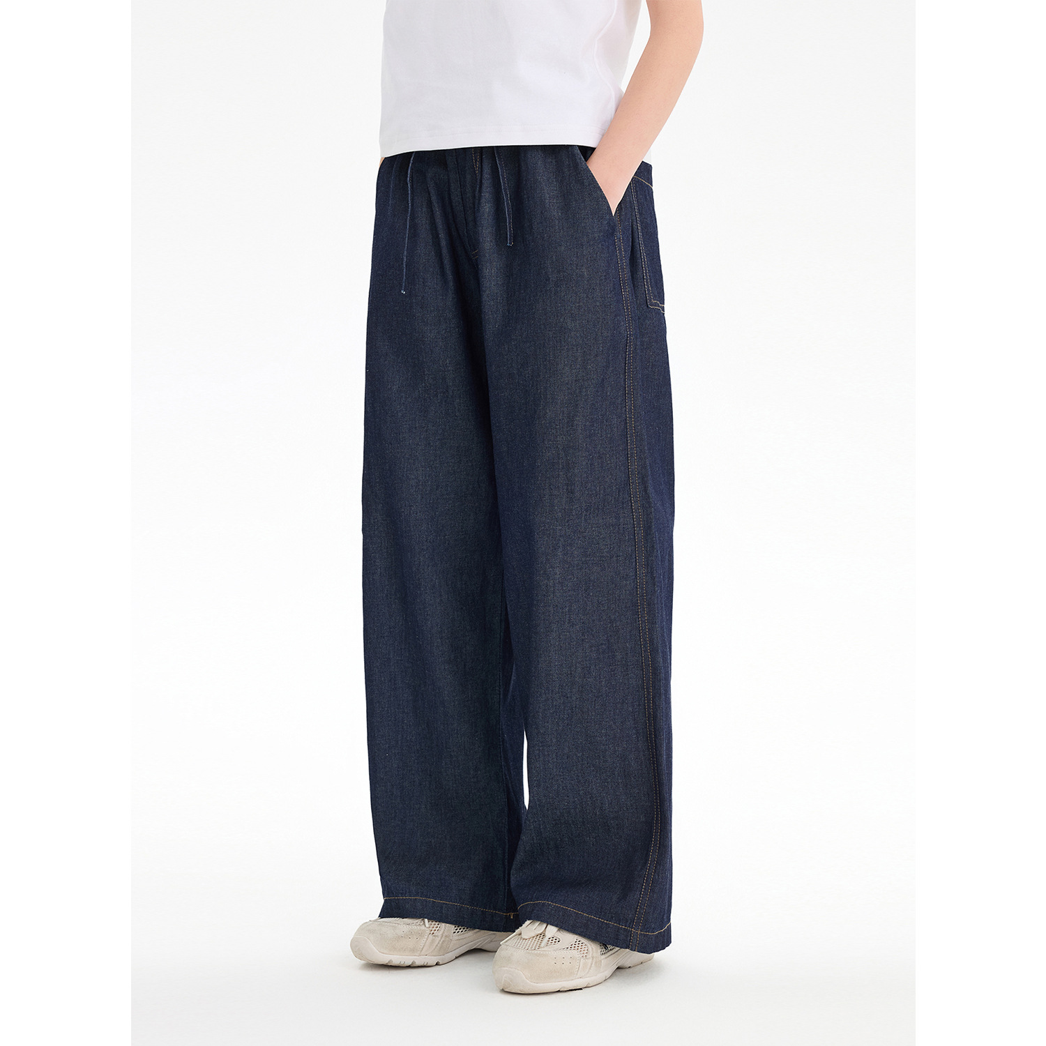 소녀 텐셀 리넨 청바지 2025 여름 새 어린이 세척 스트레이트 다리 바지 캐주얼 느슨한 넓은 다리 바지