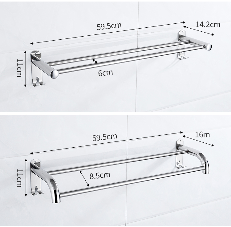 ✅ 304 두꺼운 욕실 스테인레스 스틸 수건 걸이 막대, 구멍이 없는 욕실 단일 막대 및 이중 막대 수건 걸이스토어 가기