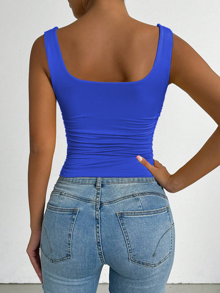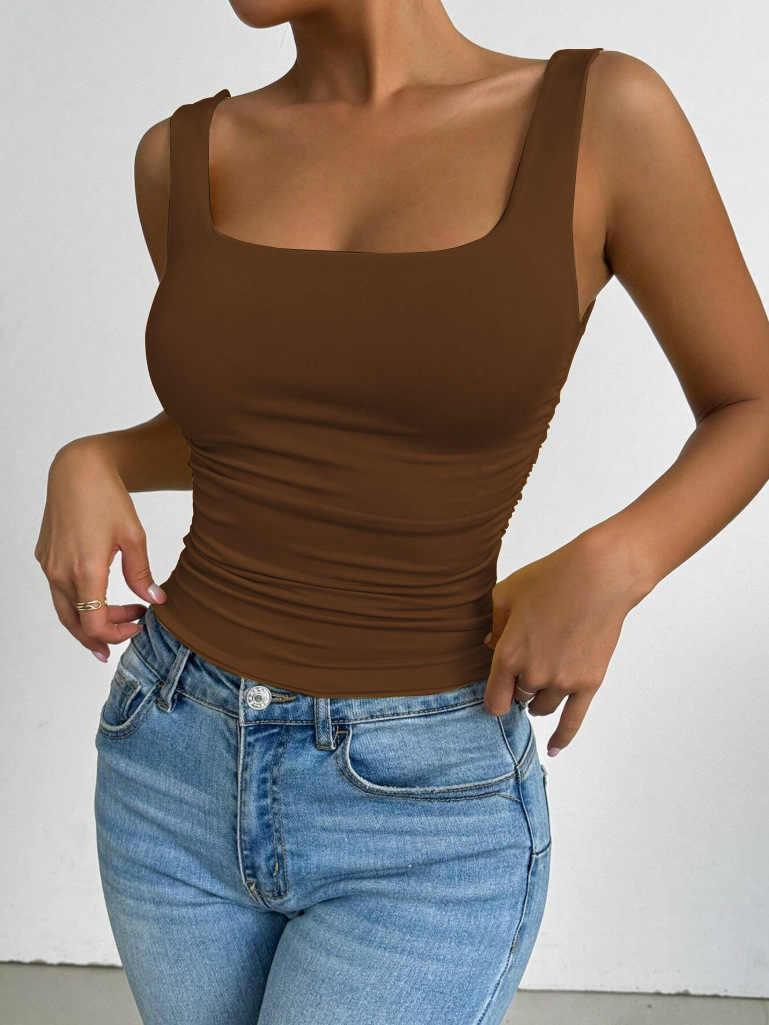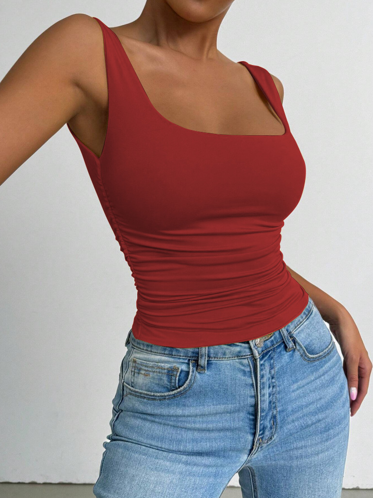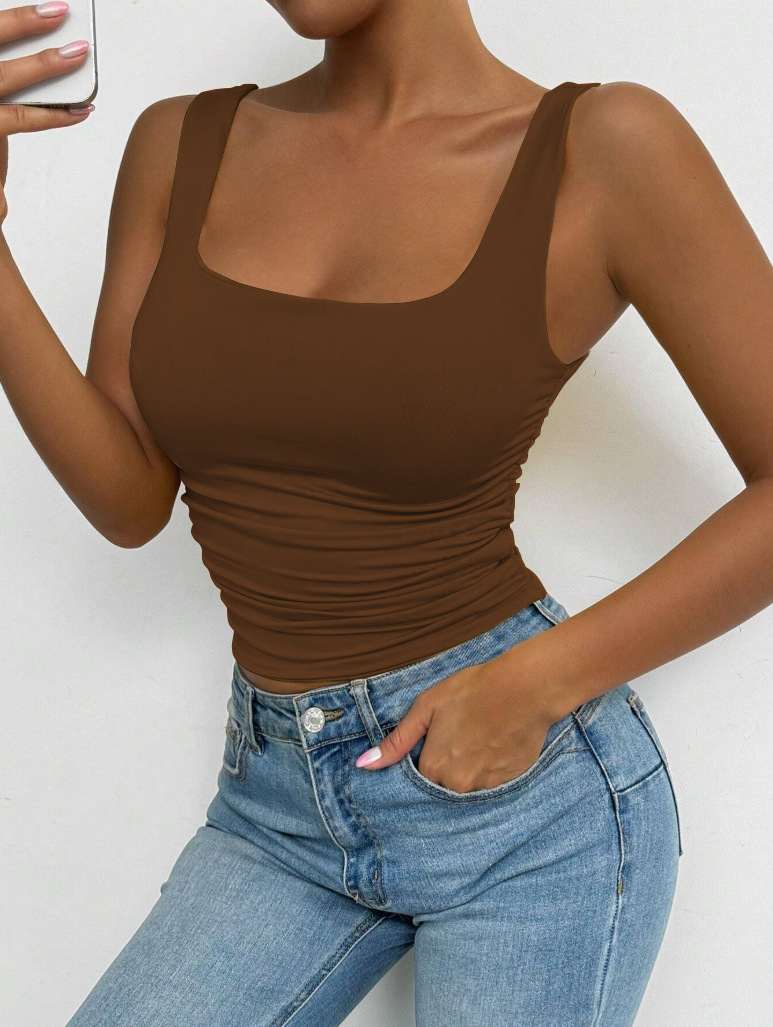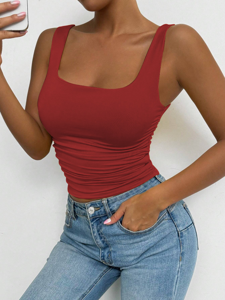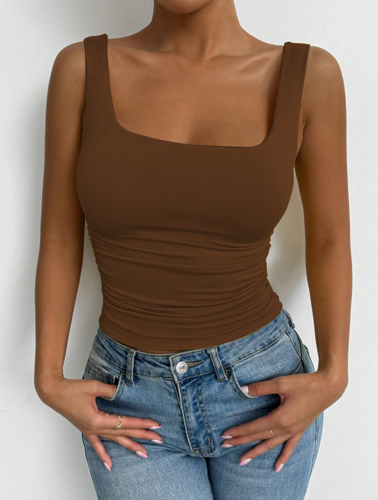 2025 유럽 및 미국 국경 새 여성 민소매 카미 솔 스퀘어 칼라 캐주얼 기본 배꼽 탑