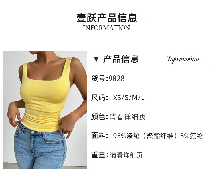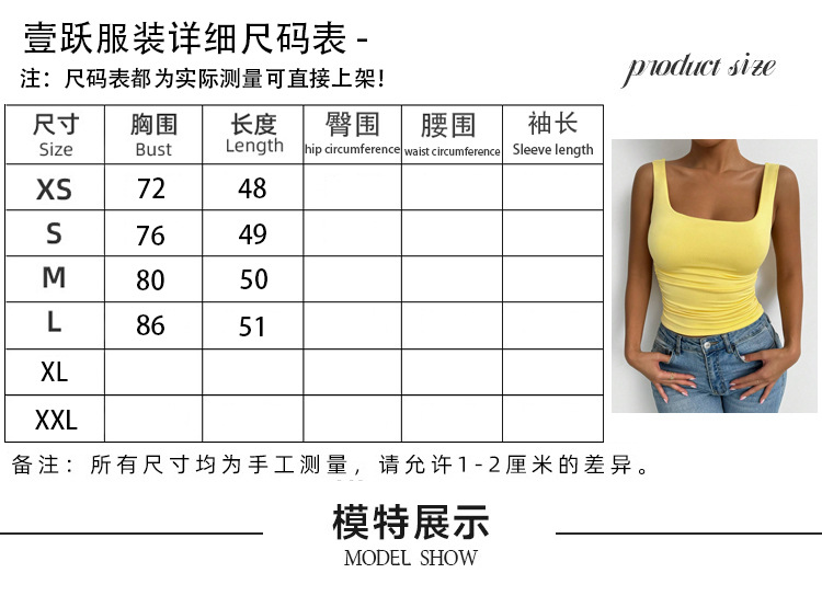 2025 유럽 및 미국 국경 새 여성 민소매 카미 솔 스퀘어 칼라 캐주얼 기본 배꼽 탑스토어 가기