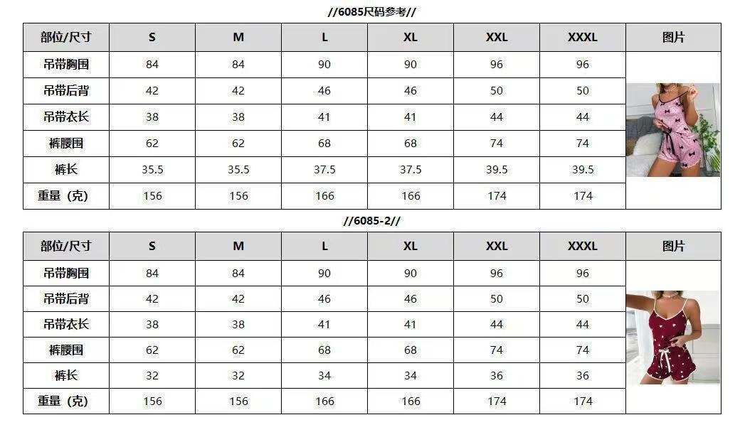 국경 간 뜨거운 유럽과 미국의 여름 여성 잠옷 투피스 섹시한 캐주얼 캐미솔 반바지 홈 의류 도매스토어 가기