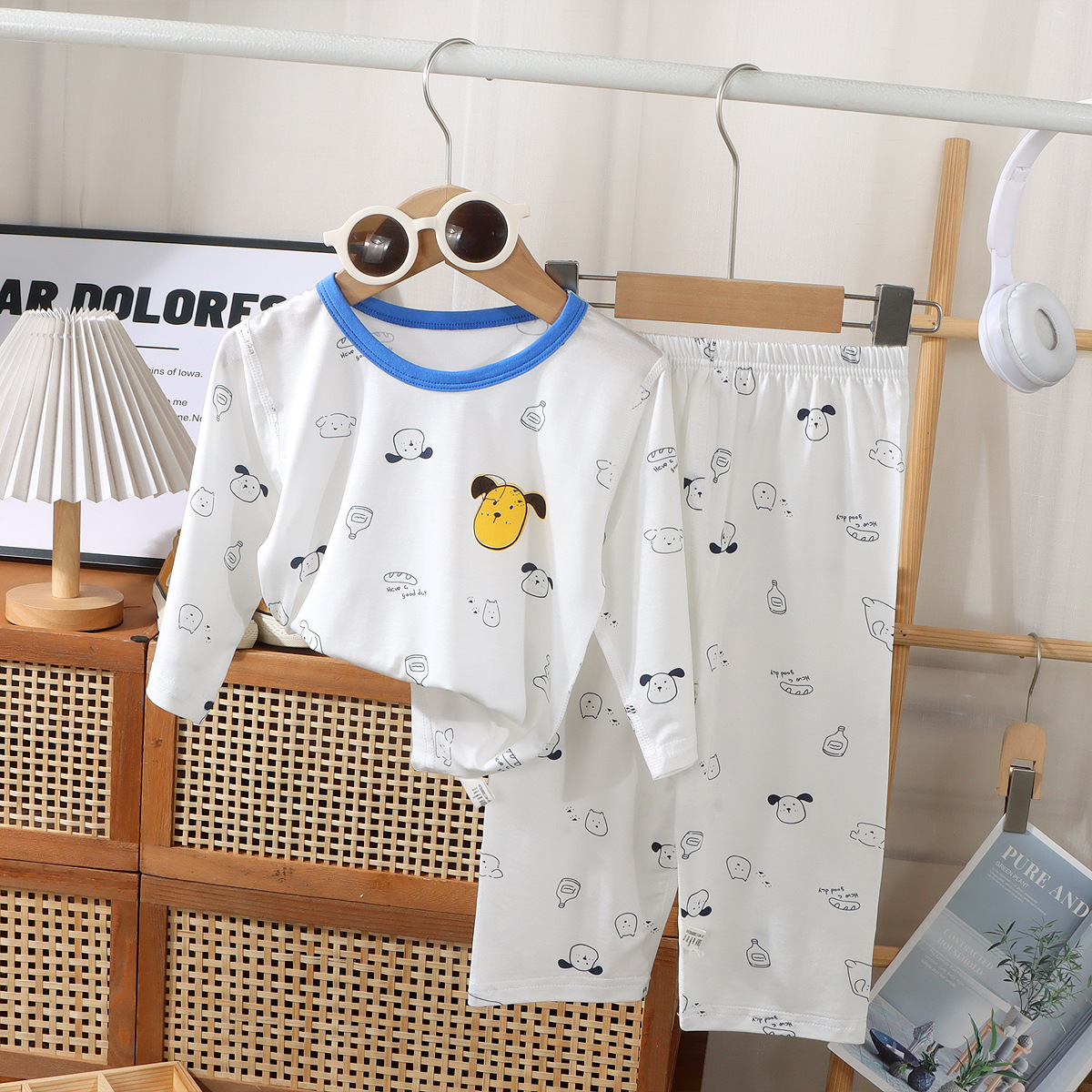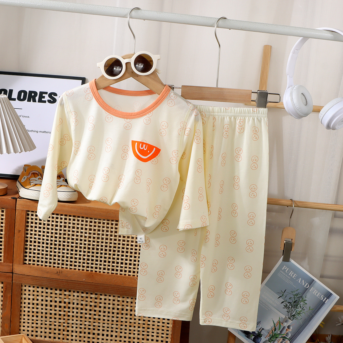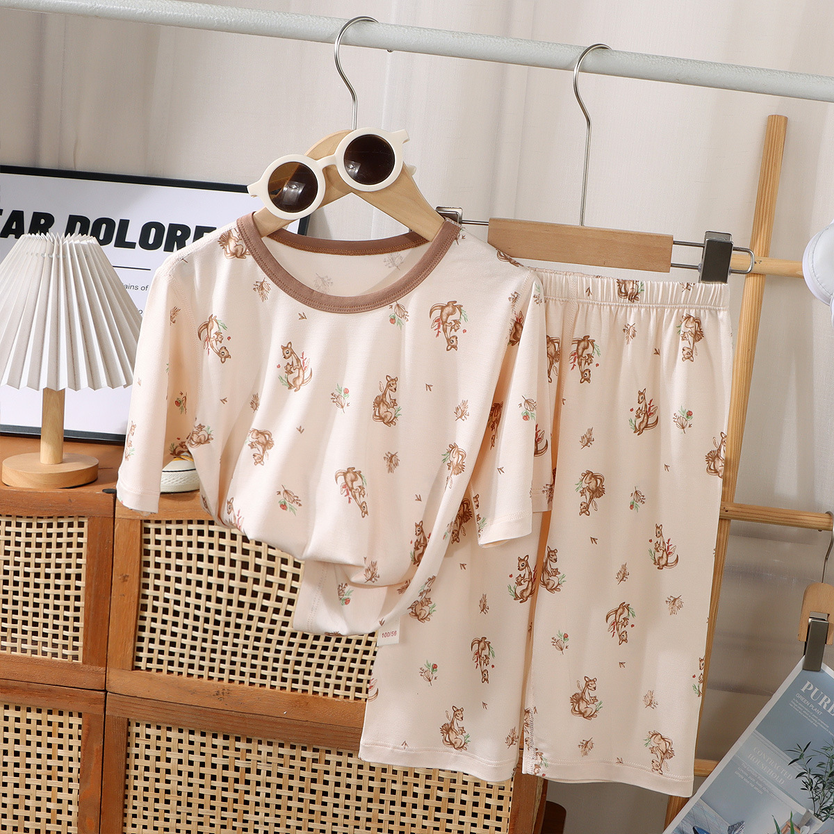 여름 어린이 7부 소매 가정복 소년 소녀용, 에코 실크 얇은 잠옷, 여아 모달 에어컨 슈트스토어 가기