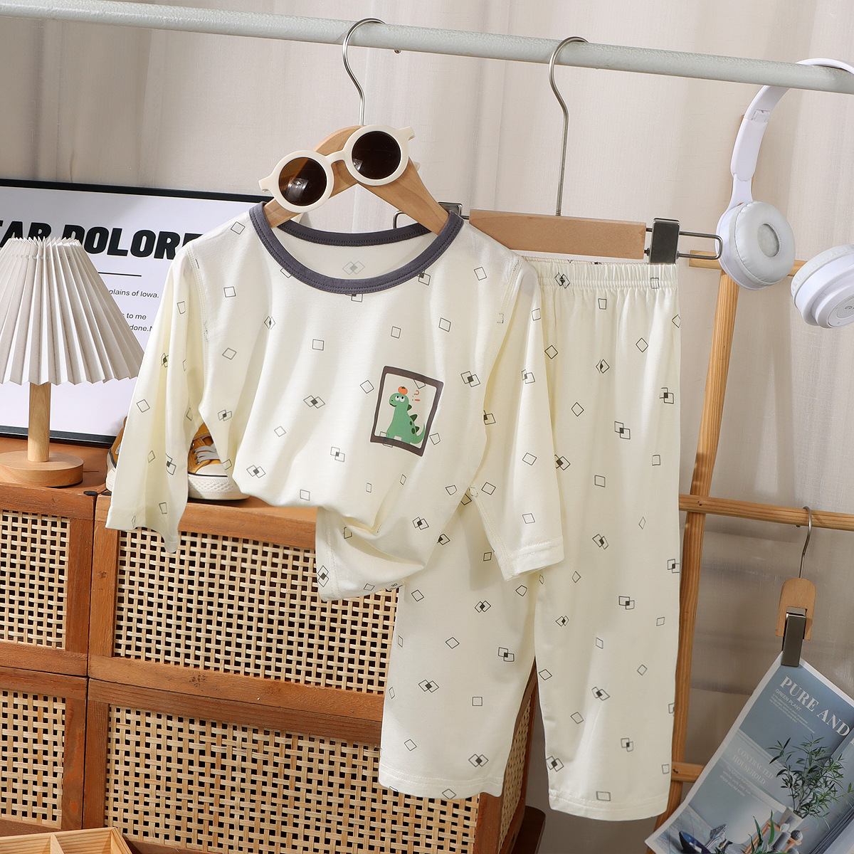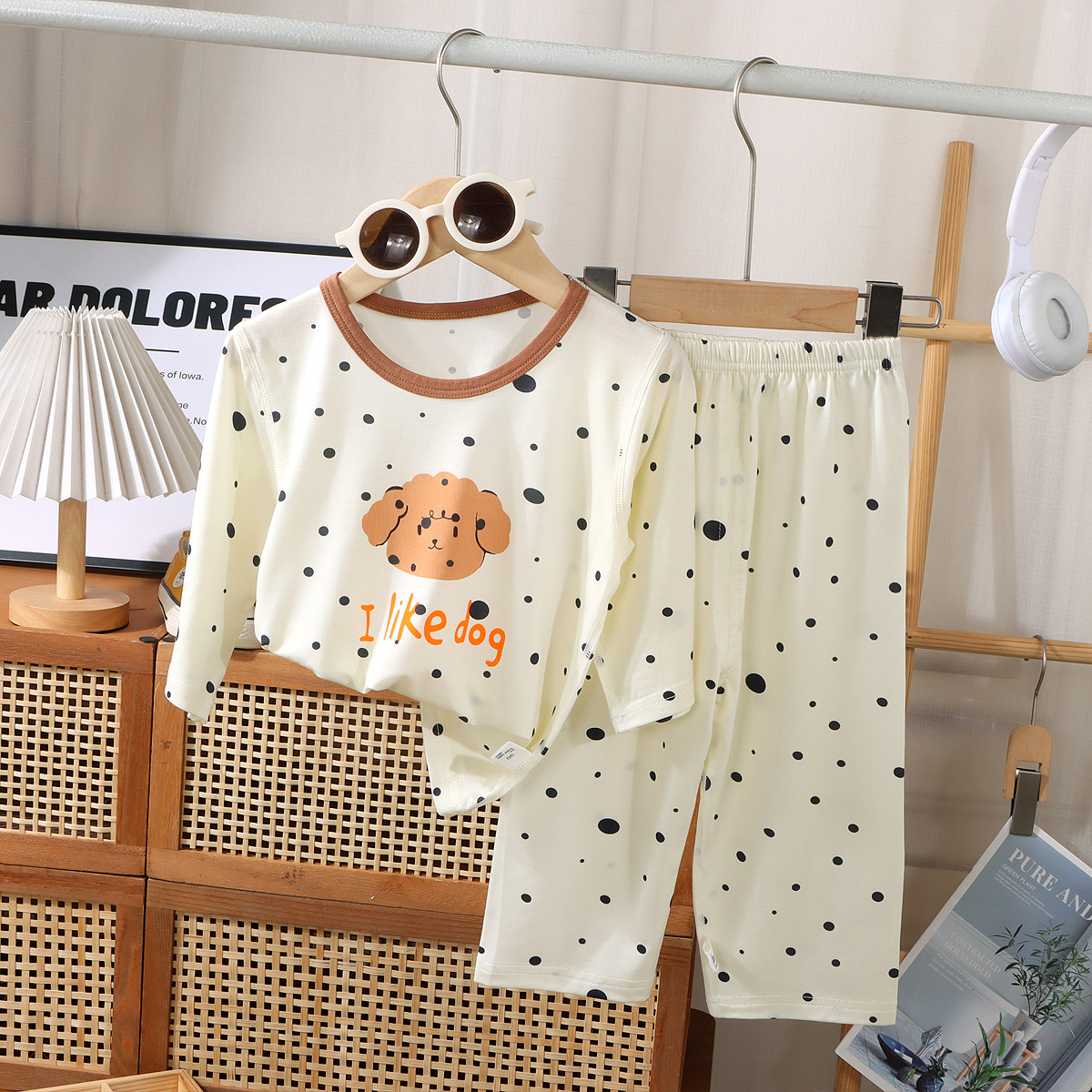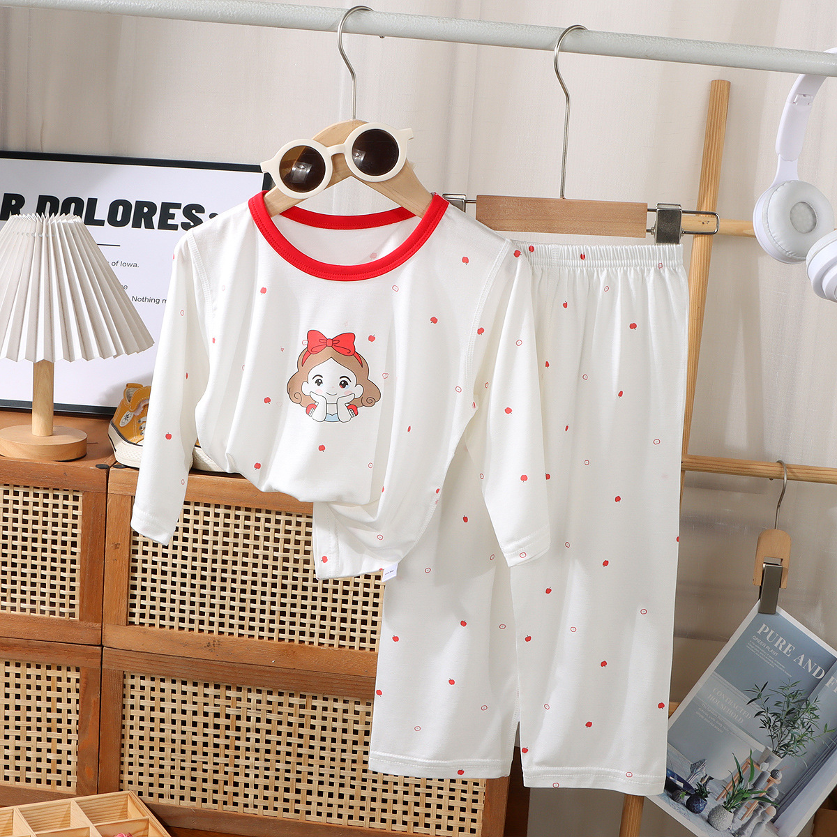 여름 어린이 7부 소매 가정복 소년 소녀용, 에코 실크 얇은 잠옷, 여아 모달 에어컨 슈트스토어 가기