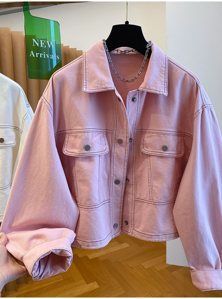 한국 스타일 명나라 라인 디자인 센스 니쉬 툴링 데님 코트 여성의 봄과 가을 2025 새로운 느슨한 짧은 재킷 탑스토어 가기